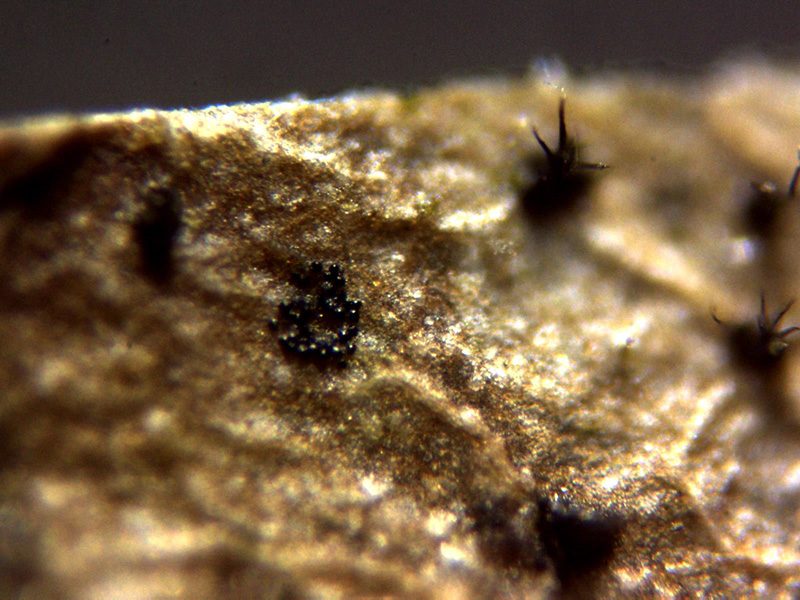 , añadir que esta especie por su tamaño es de las que se nos pasan desapercibidas, y que generalmente suele afectar a hojas verdes a las que provoca unas manchas, quizás por este detalle me ha sido tan difícil el dar con sus conidios, los que ya mayoritariamente se habrían desprendido al tratarse de ejemplares muy maduros.