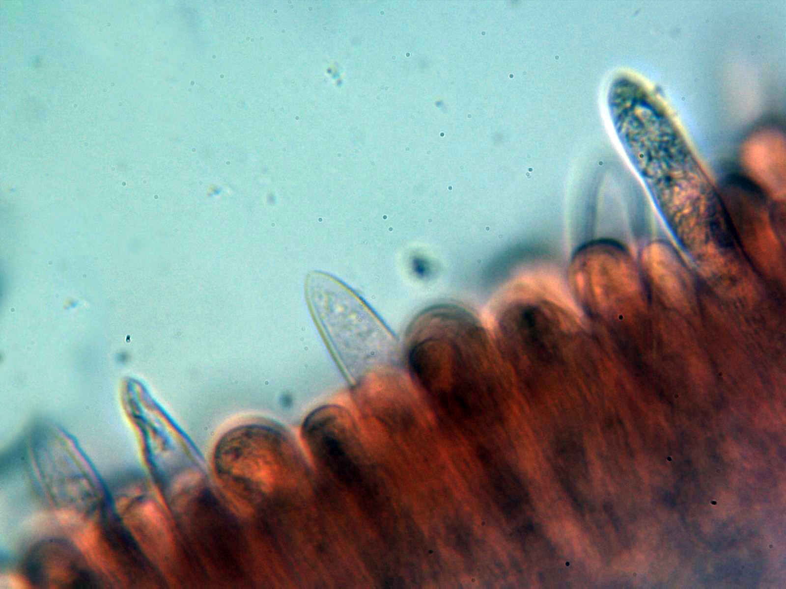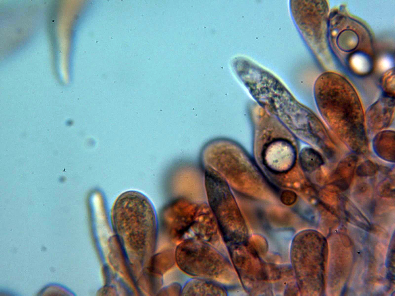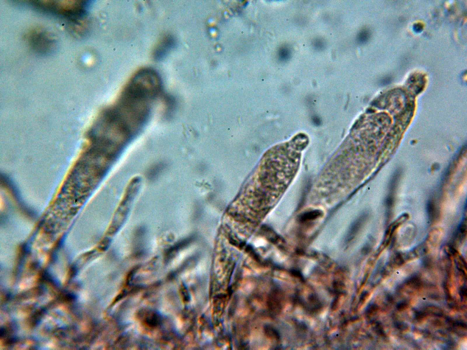 Dermatocistidios presentes en Floxina a 400 aumentos:
