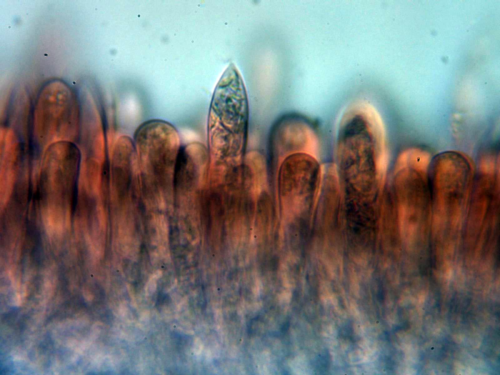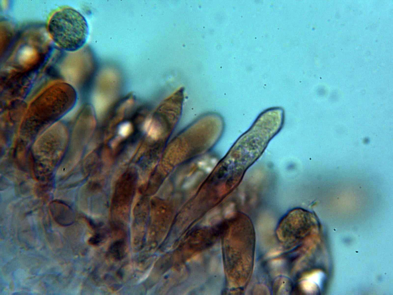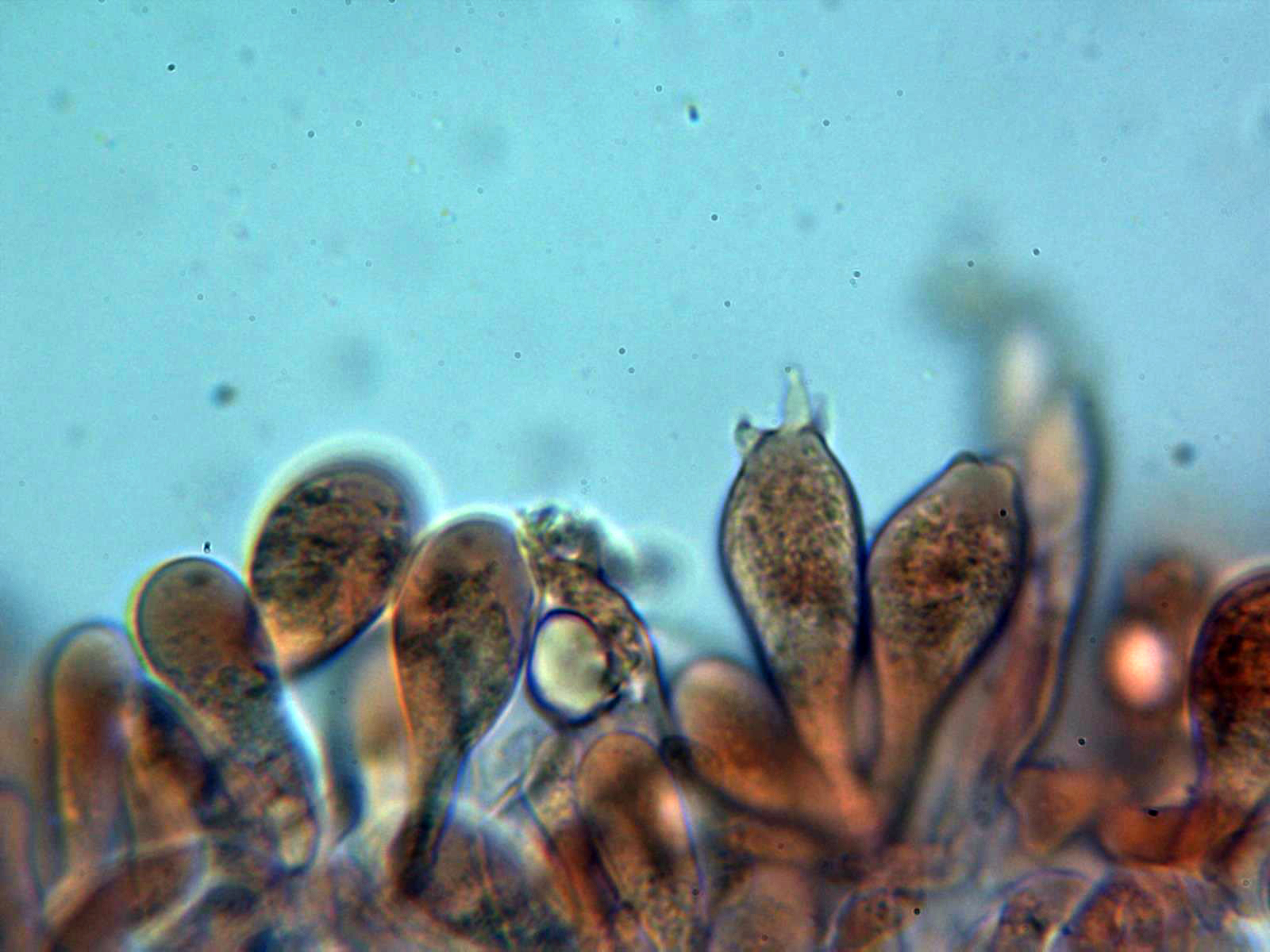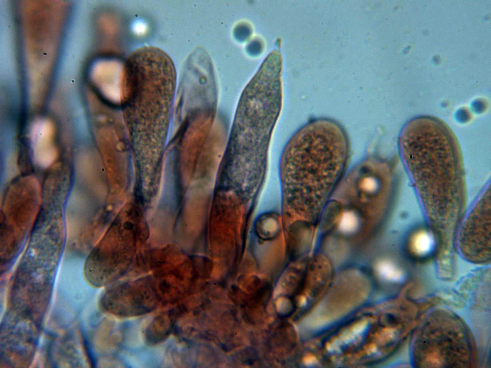 Dermatocistidios presentes en Floxina a 400 aumentos:
