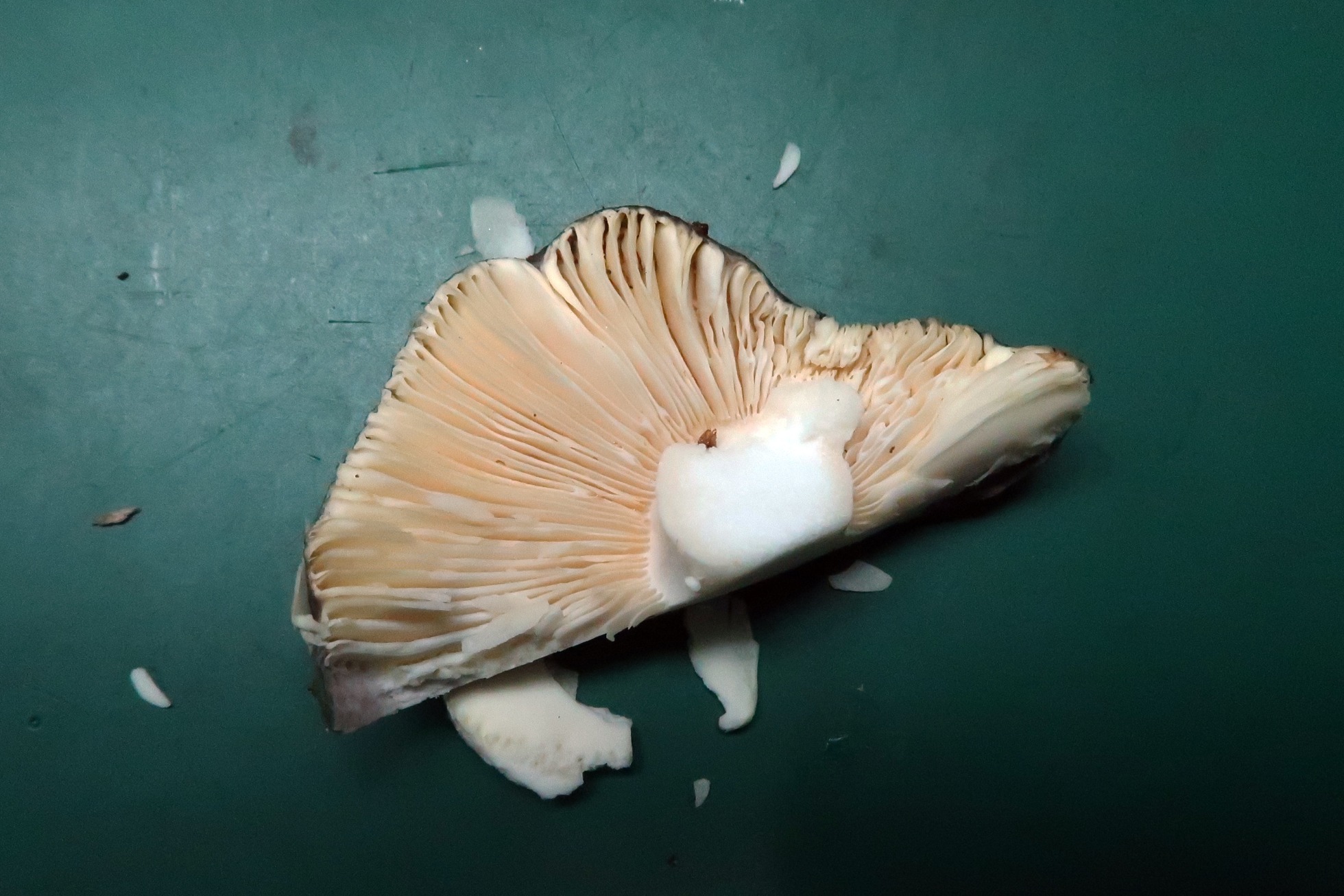 Aunque la cutícula se separa un poco más de la cuenta, por sus características no puedo considerar otra opción que no sea la de la Russula decipiens.