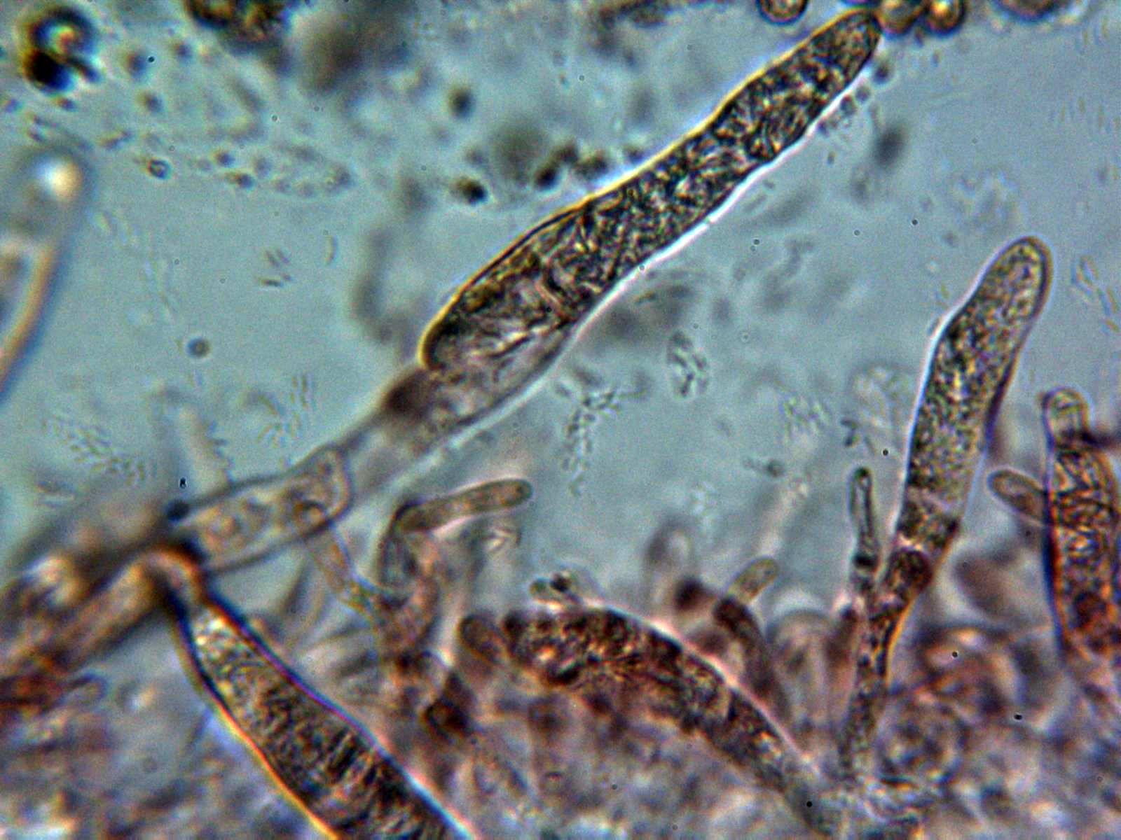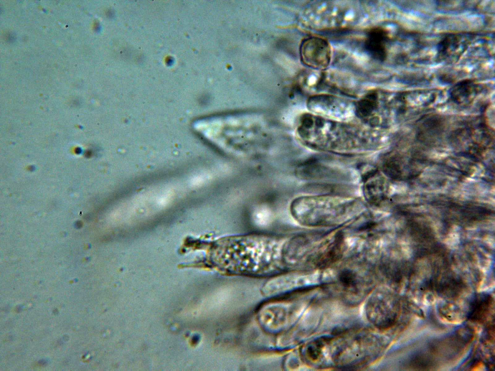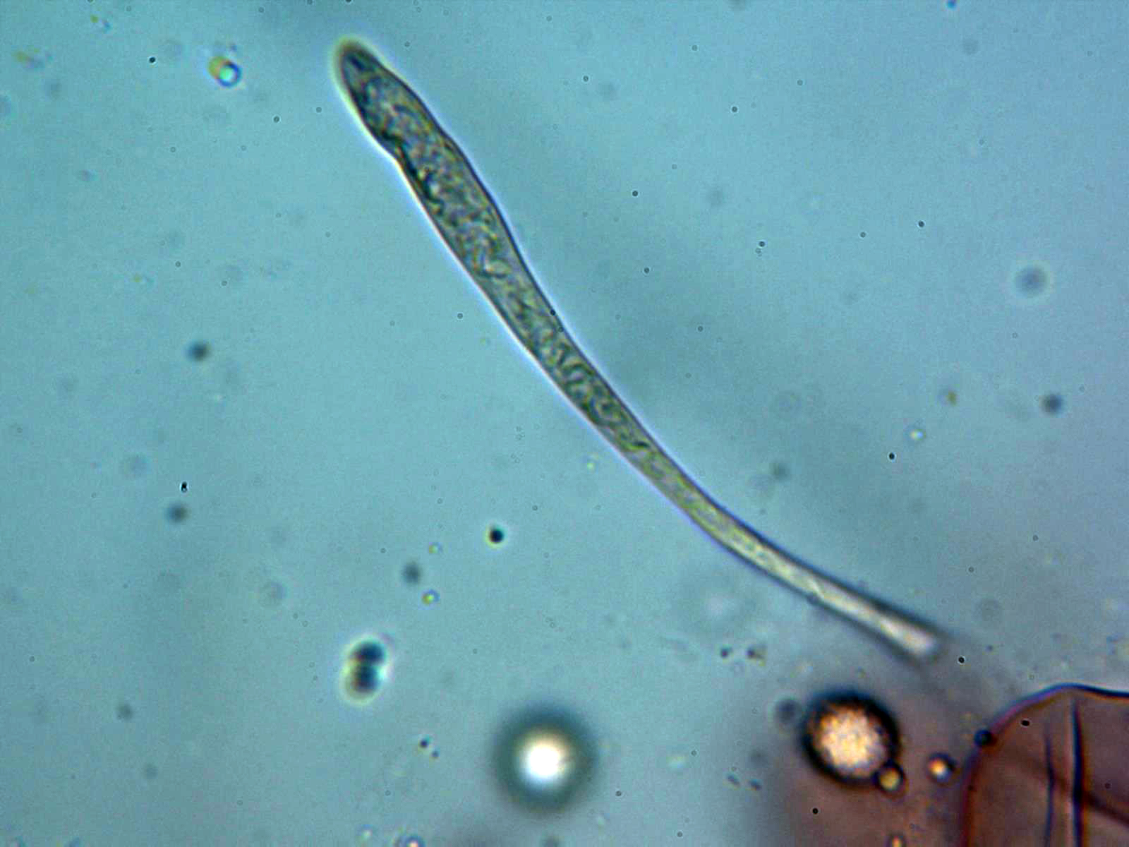 Dermatocistidio en agua a 1000 aumentos: