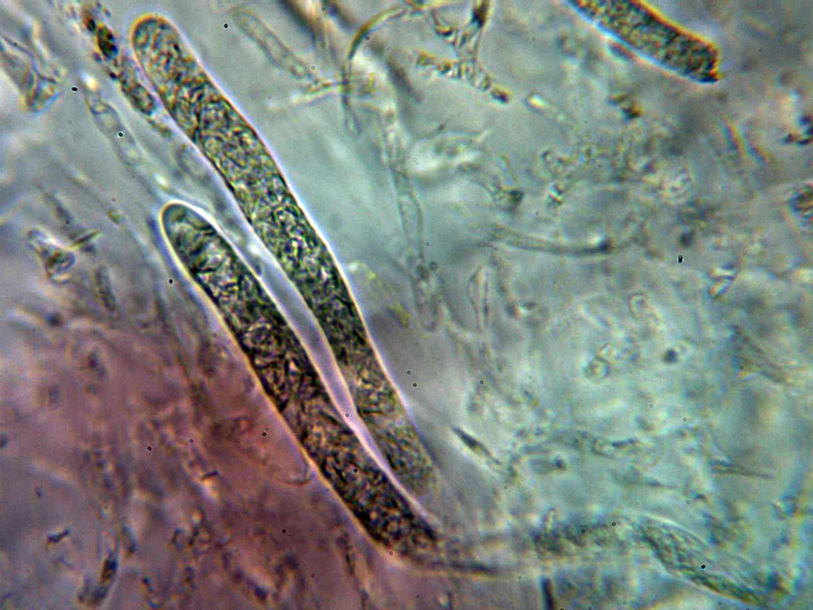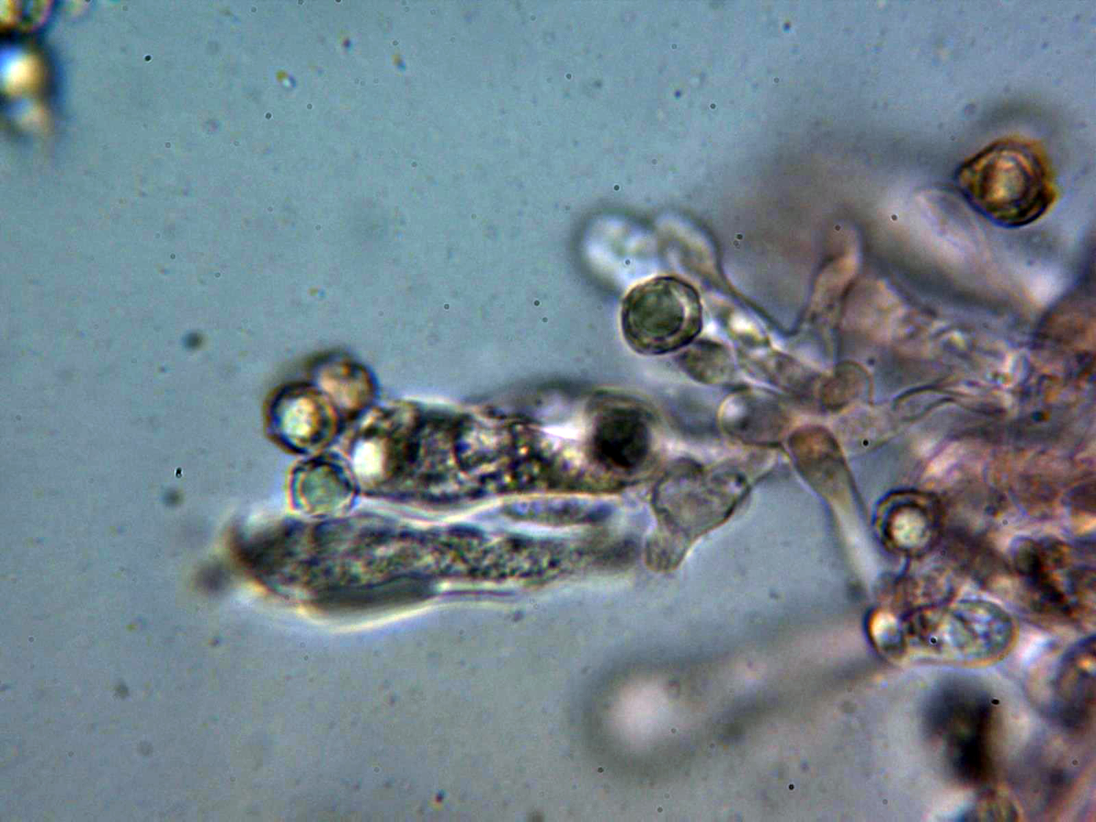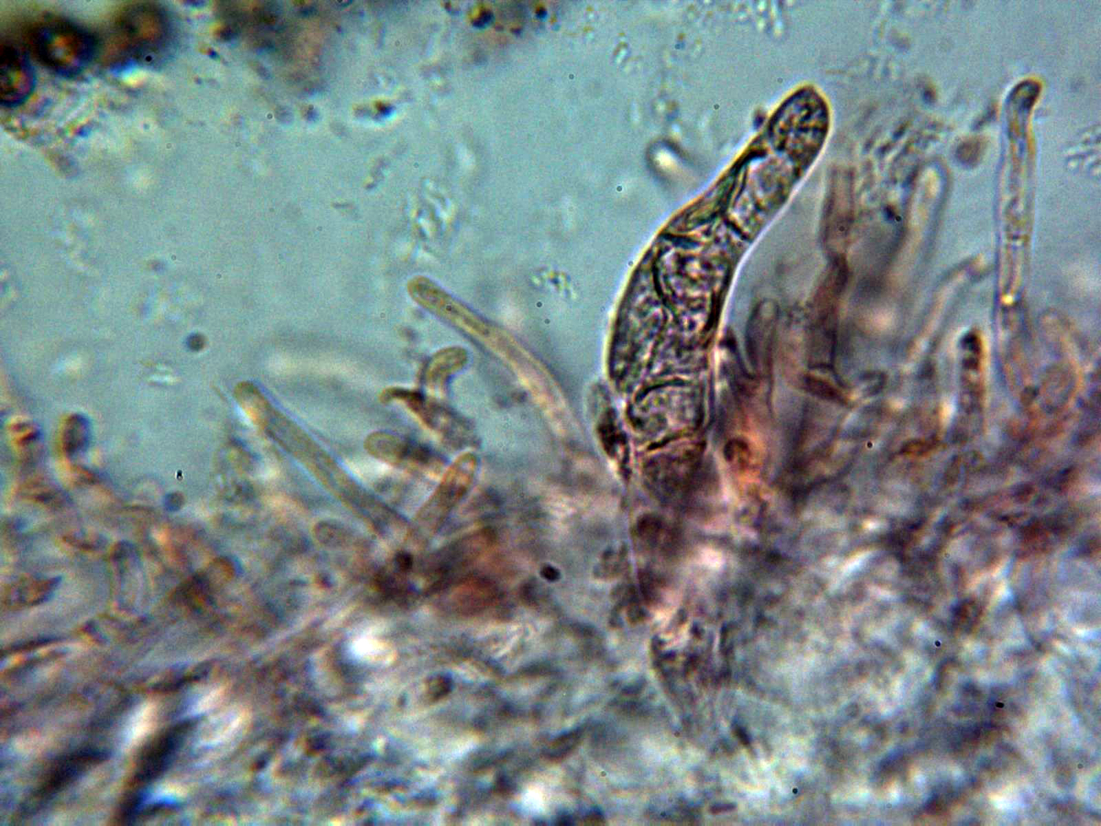 Dermatocistidio en agua a 1000 aumentos: