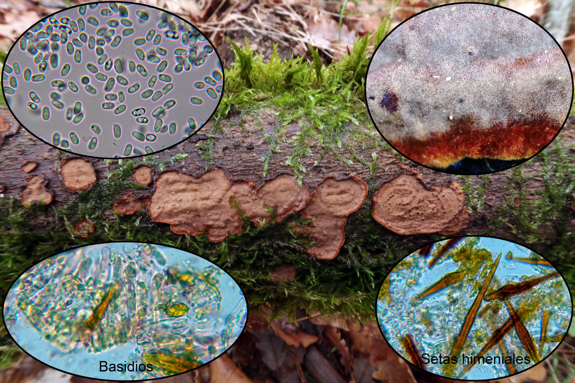 Otra que ya llevaba unos años sin ver, la Hymenochaete rubiginosa, esta al contrario que con la anterior si bien hasta ahora me había resultado siempre difícil el poder obtener esporas, en esta ocasión pude obtener una muy buena cantidad de ellas.