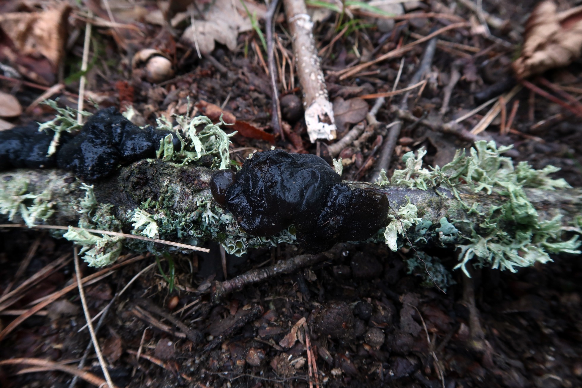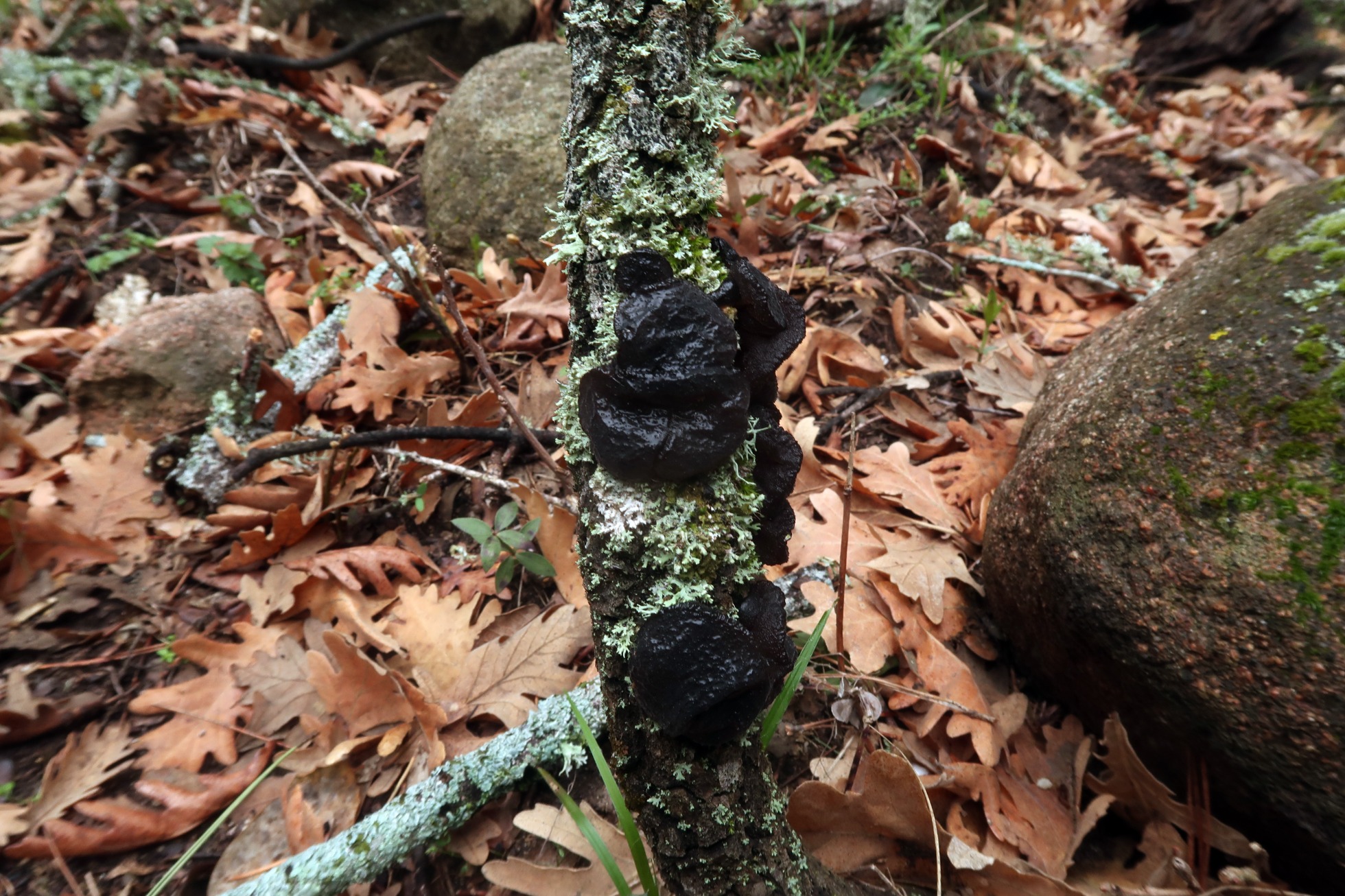 Una Exidia que si bien solo la he podido ver en contadas ocasiones, en este caso la había por todas partes y además en grandes cantidades, la Exidia glandulosa.