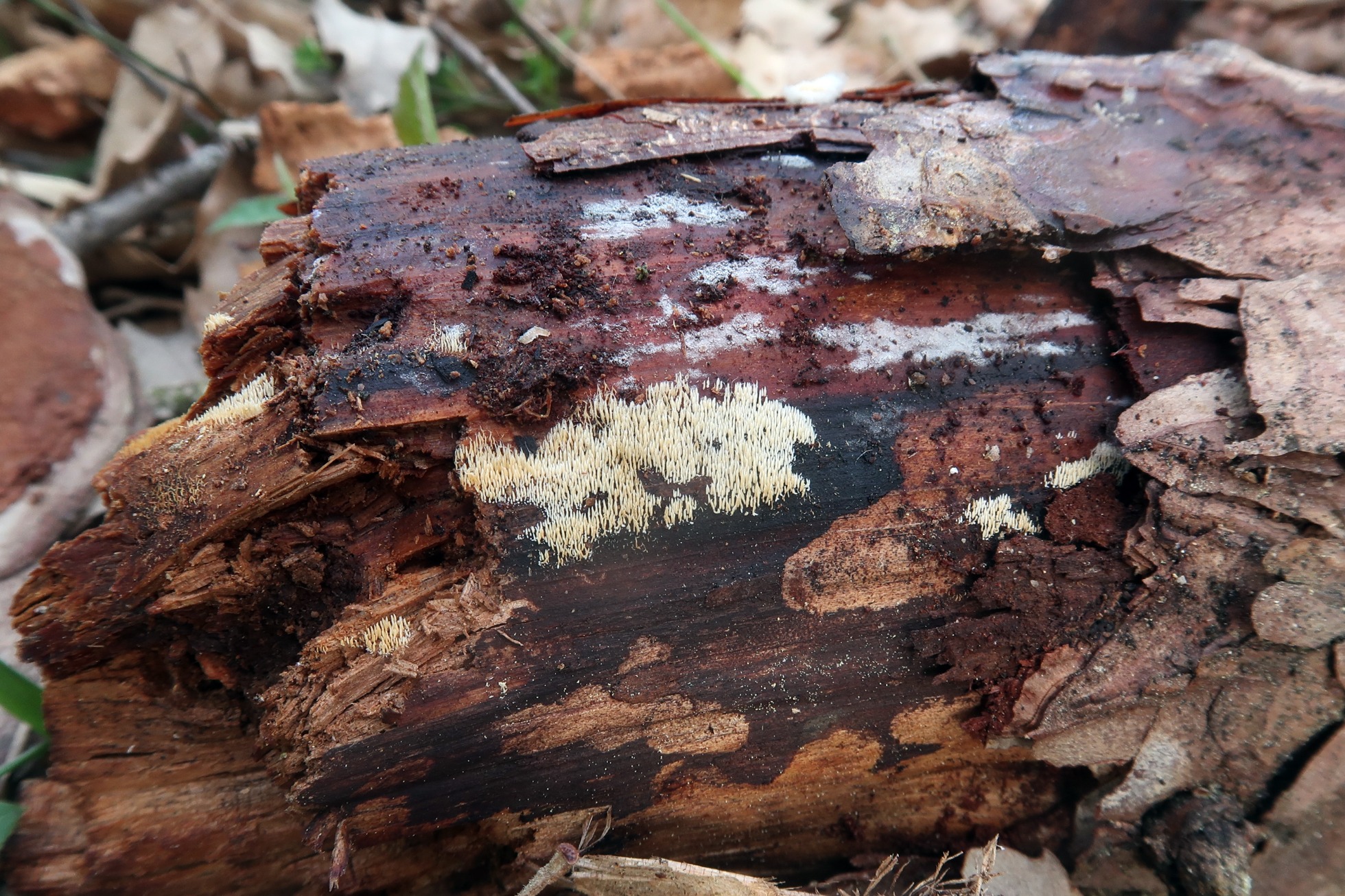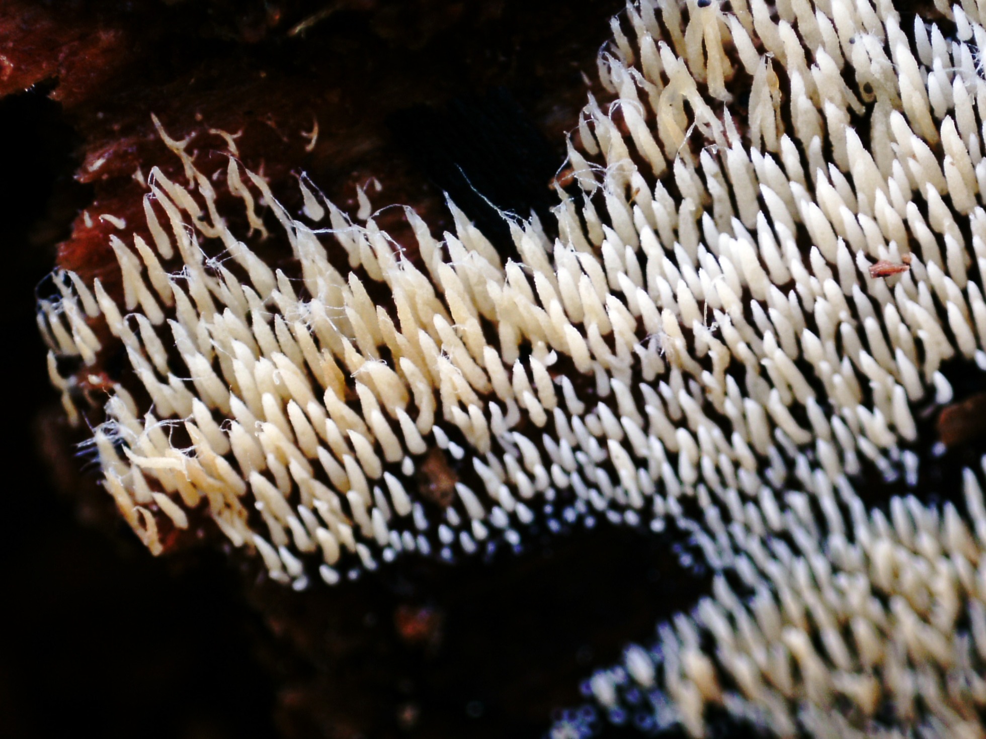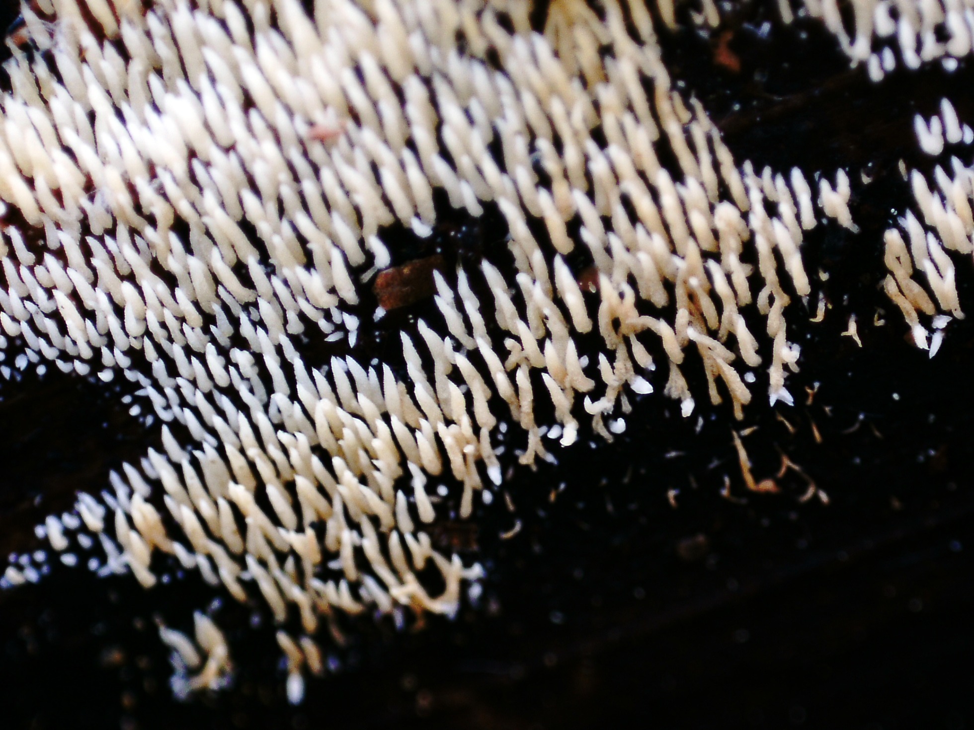 El primero un Corticial hydnoide con acúleos de pequeño tamaño sin una base común, esta es solo la segunda vez que me lo encuentro, la Mucronella calva.