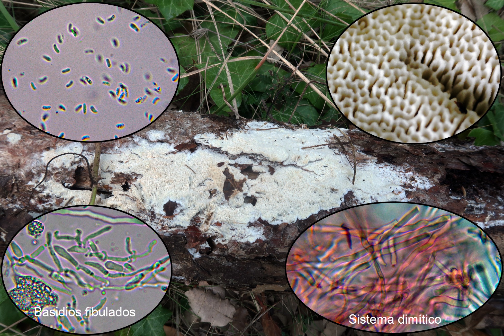 Y por último otro Corticial en esta ocasión poroide, que por su sistema hifal dimítico y su morfología esporal me conducen a Skeletocutis, aunque con algunas dudas ya que no pude observar sus características cristalizaciones, todos los demás datos obtenidos conducen a la Skeletocutis albocremea.