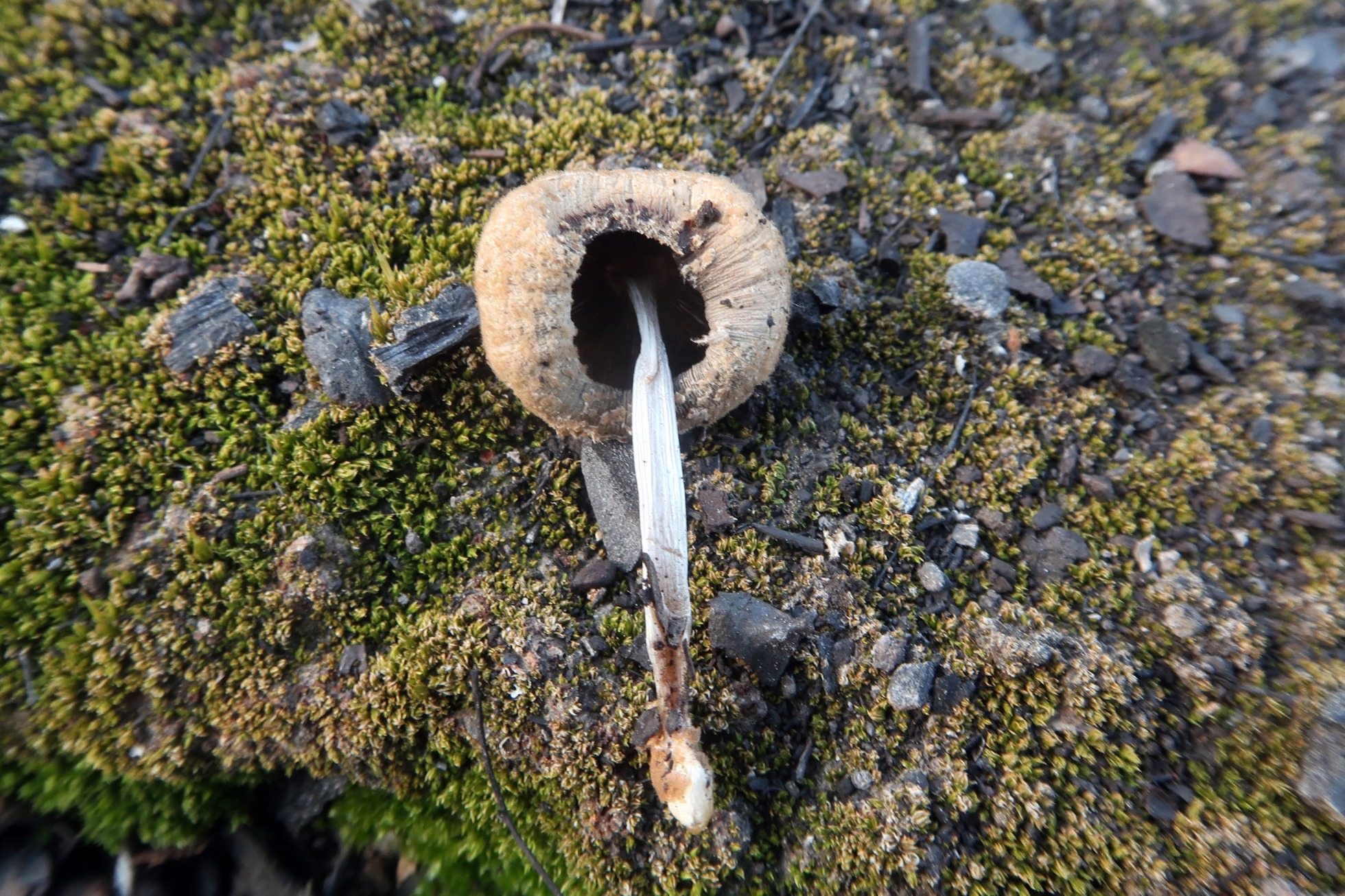 Una Psathyrella localizada este pasado domingo sobre suelo carbonizado, la Psathyrella carbonicola, actualmente: