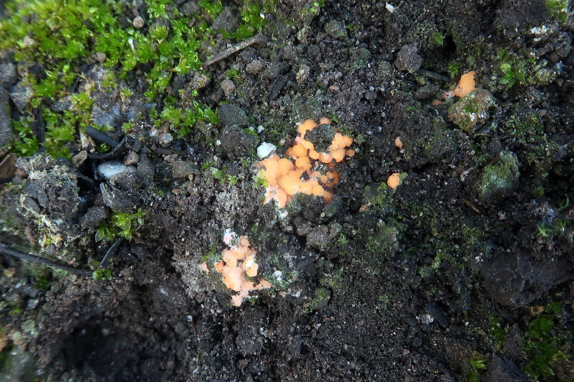 Posteriormente y ya en Abril de 2017, en la misma hoguera me encuentro de nuevo con un Pyronema, aunque con un aspecto bastante distinto del anterior, con los datos microscópicos lo identifiqué como Pyronema domesticum, dejo el enlace de mi trabajo: