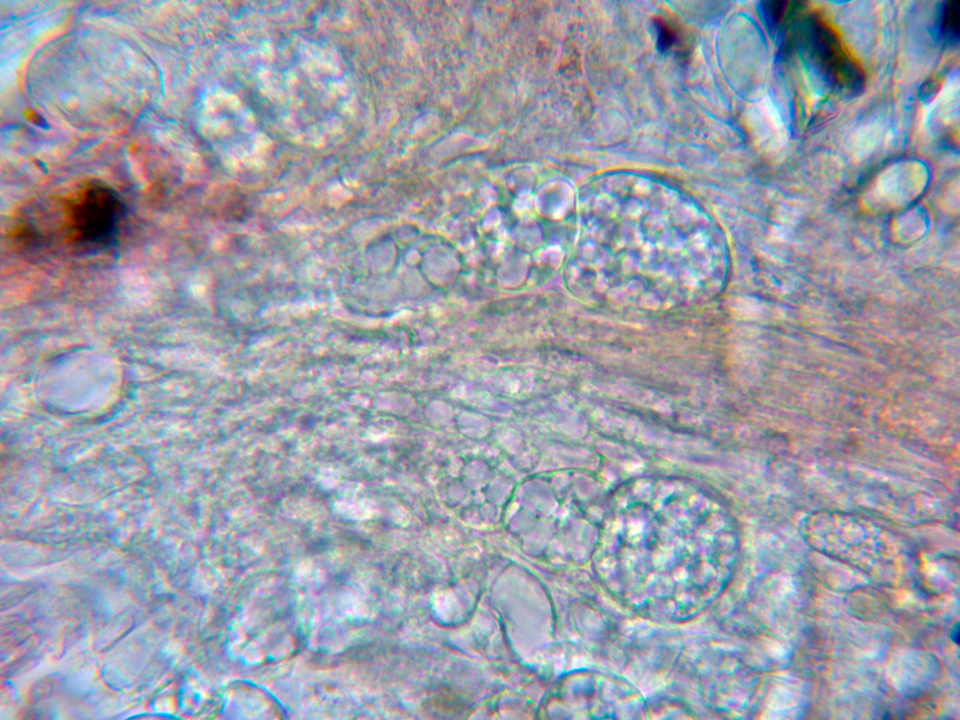 Ascos en Reactivo de Melzer, sin reacción amiloide (-)