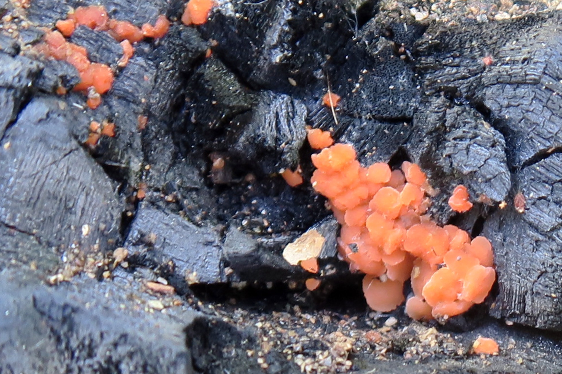 Allá por Junio de 2015 en una hoguera me encontré con un Pyronema, el que pude identificar gracias a Pedro Zapico, entonces lo etiqueté sin disponer de su microscopía como Pyronema omphalodes, dejo una imágen: