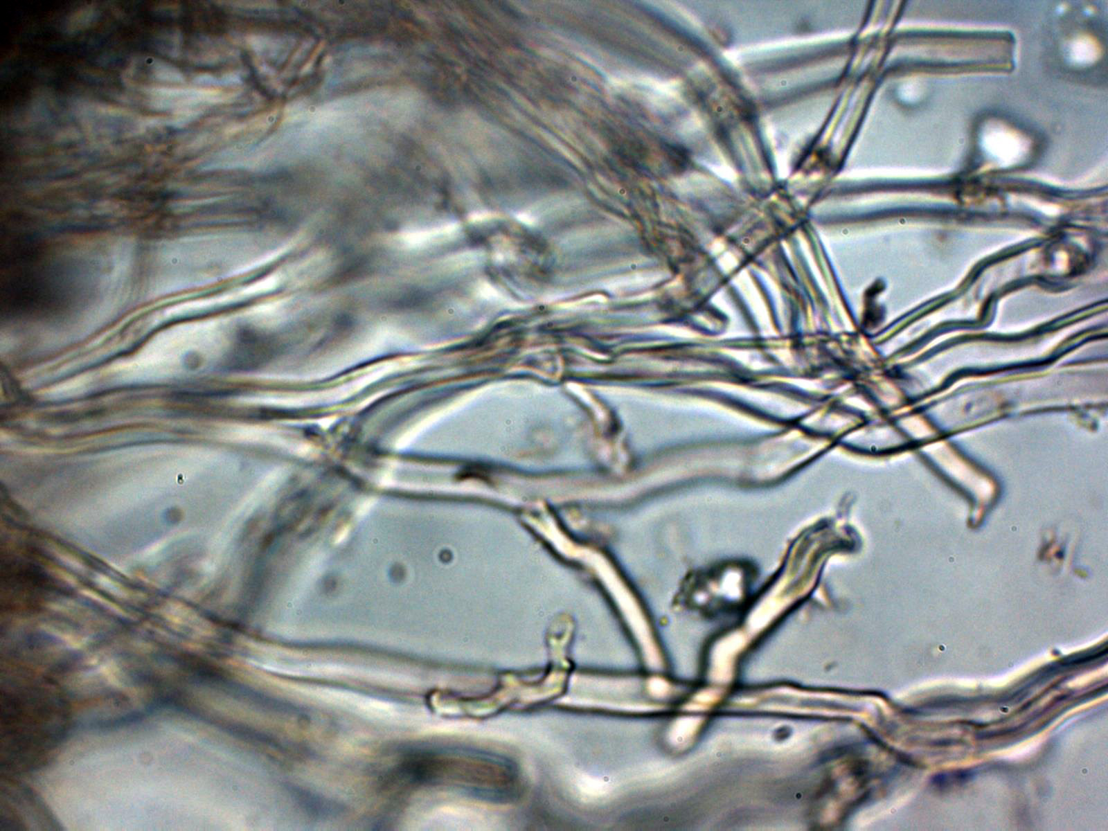Las hifas del himenio que apuntan a un sistema hifal trimítico: