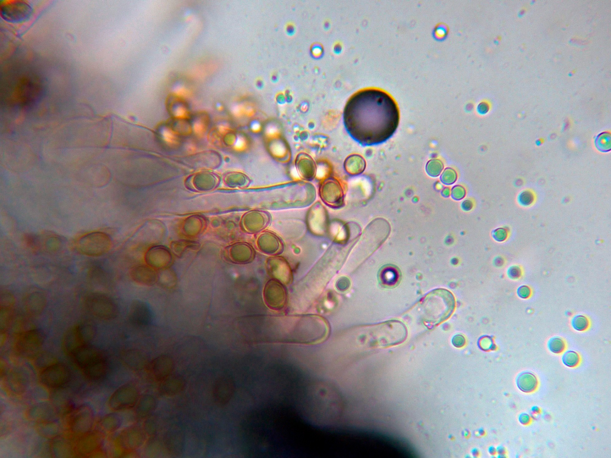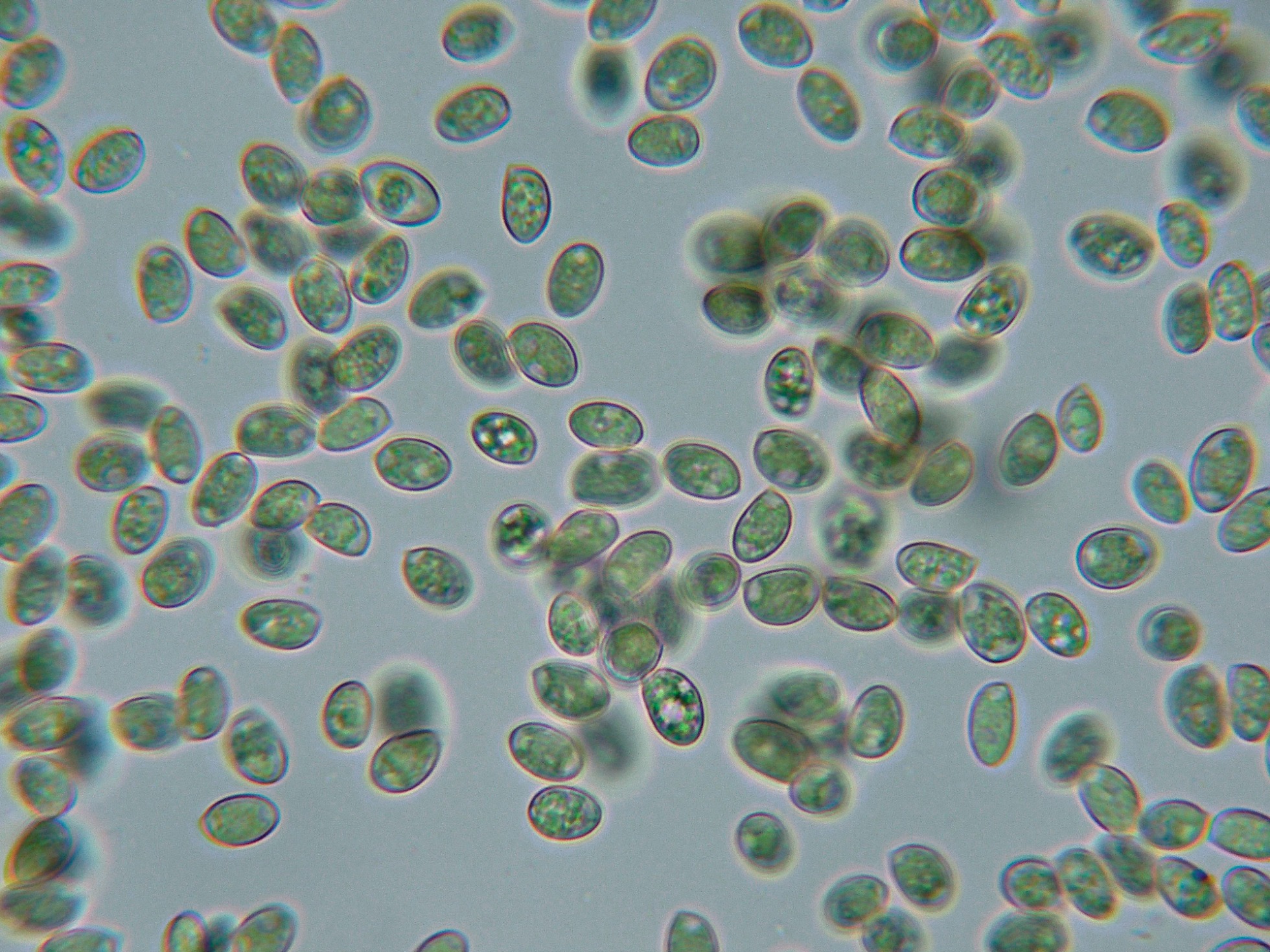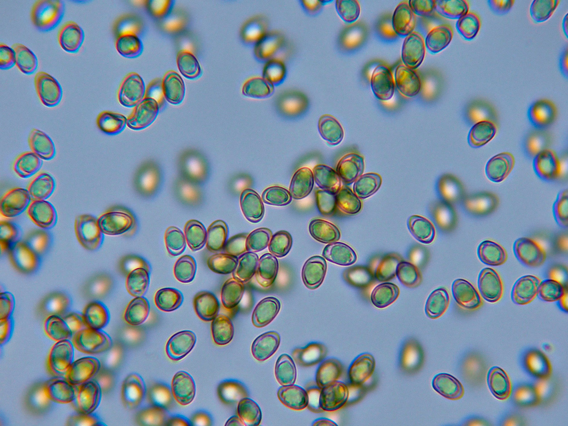 Esporas poco verrucosas, casi lisas, poco coloreadas, entre ovoides y elipsoides, con una discreta apícula lateral y que no reaccionan al Melzer (inamiloides).