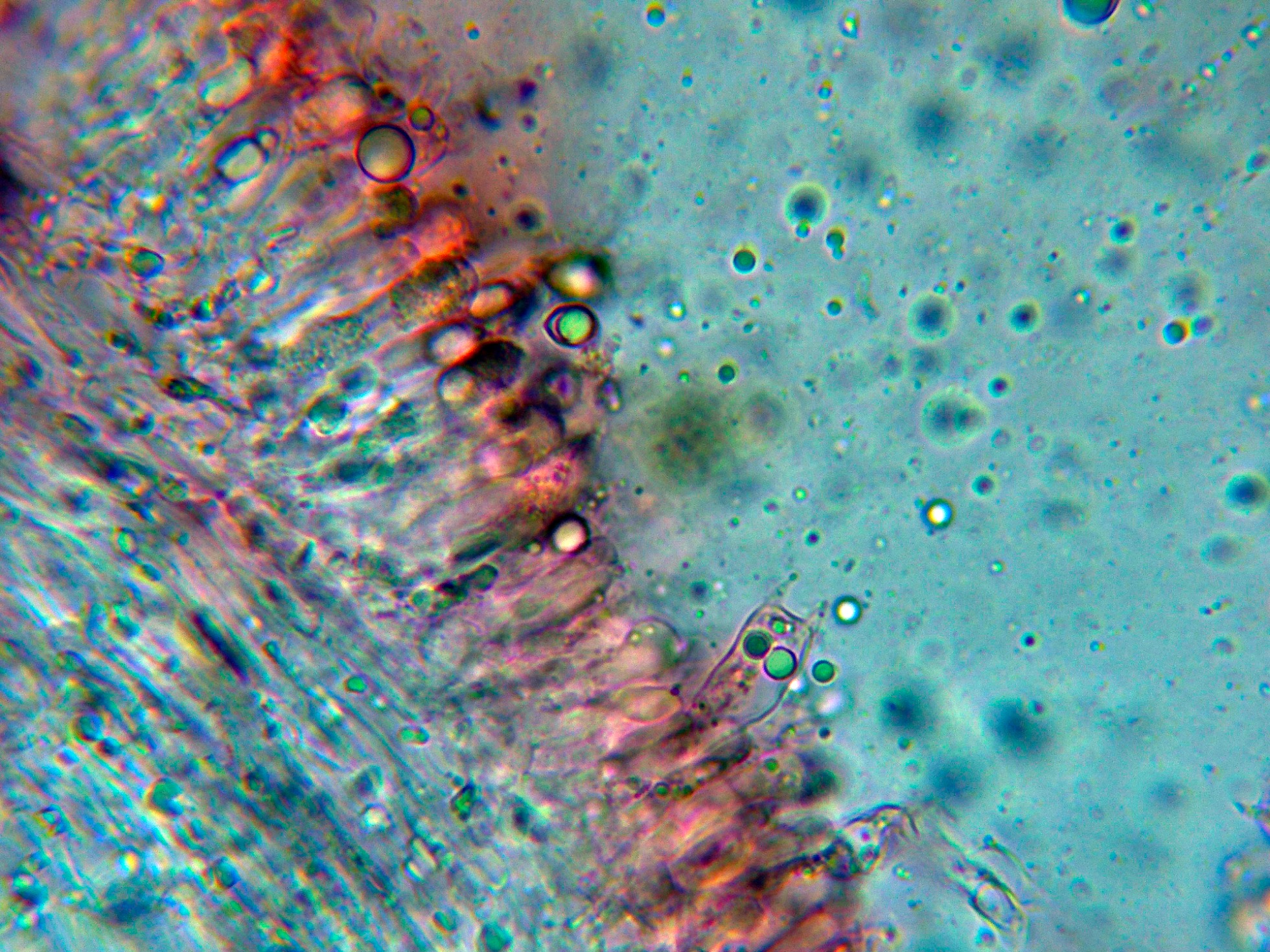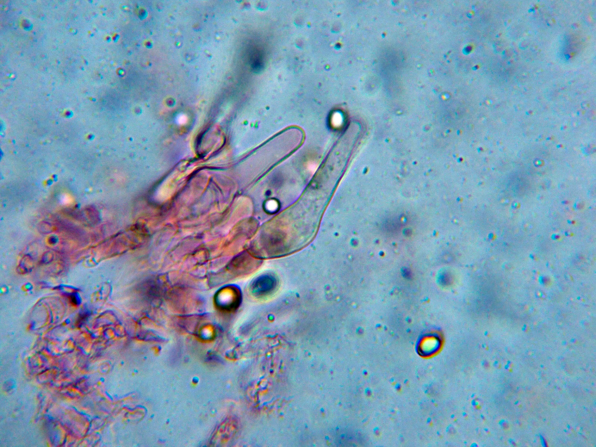 Estos queilocistidios son más visibles utilizando Hidróxido amónico (NH4OH)