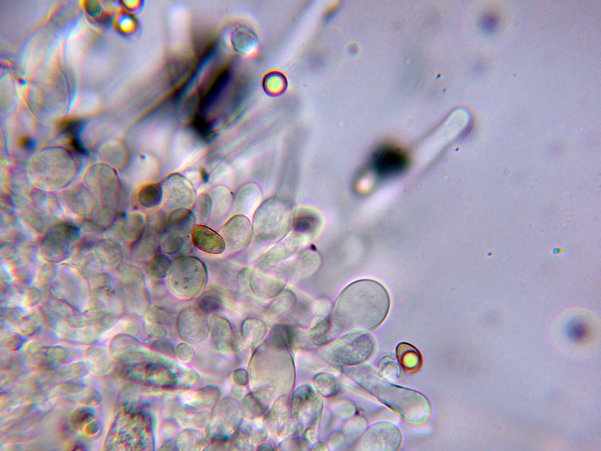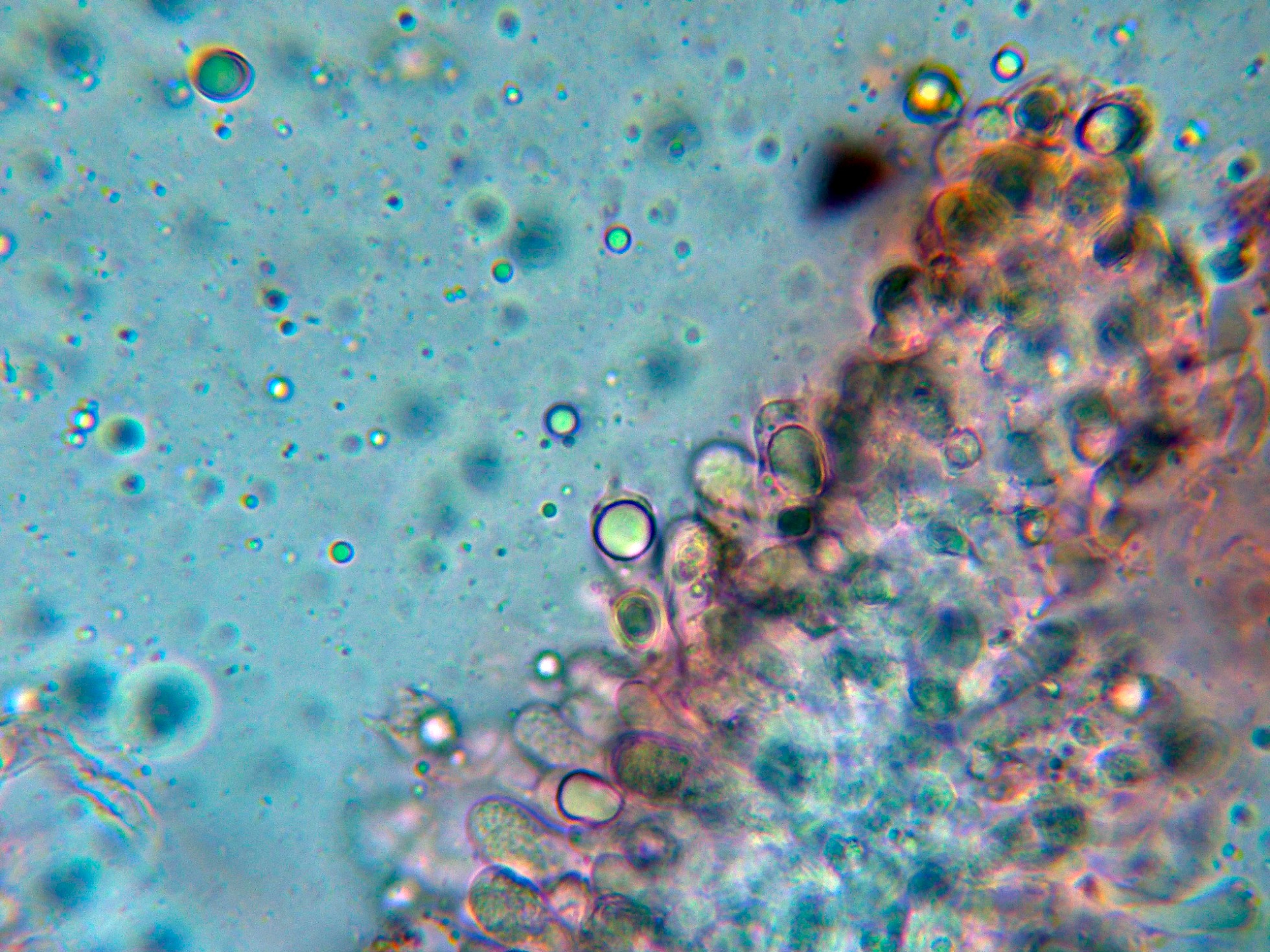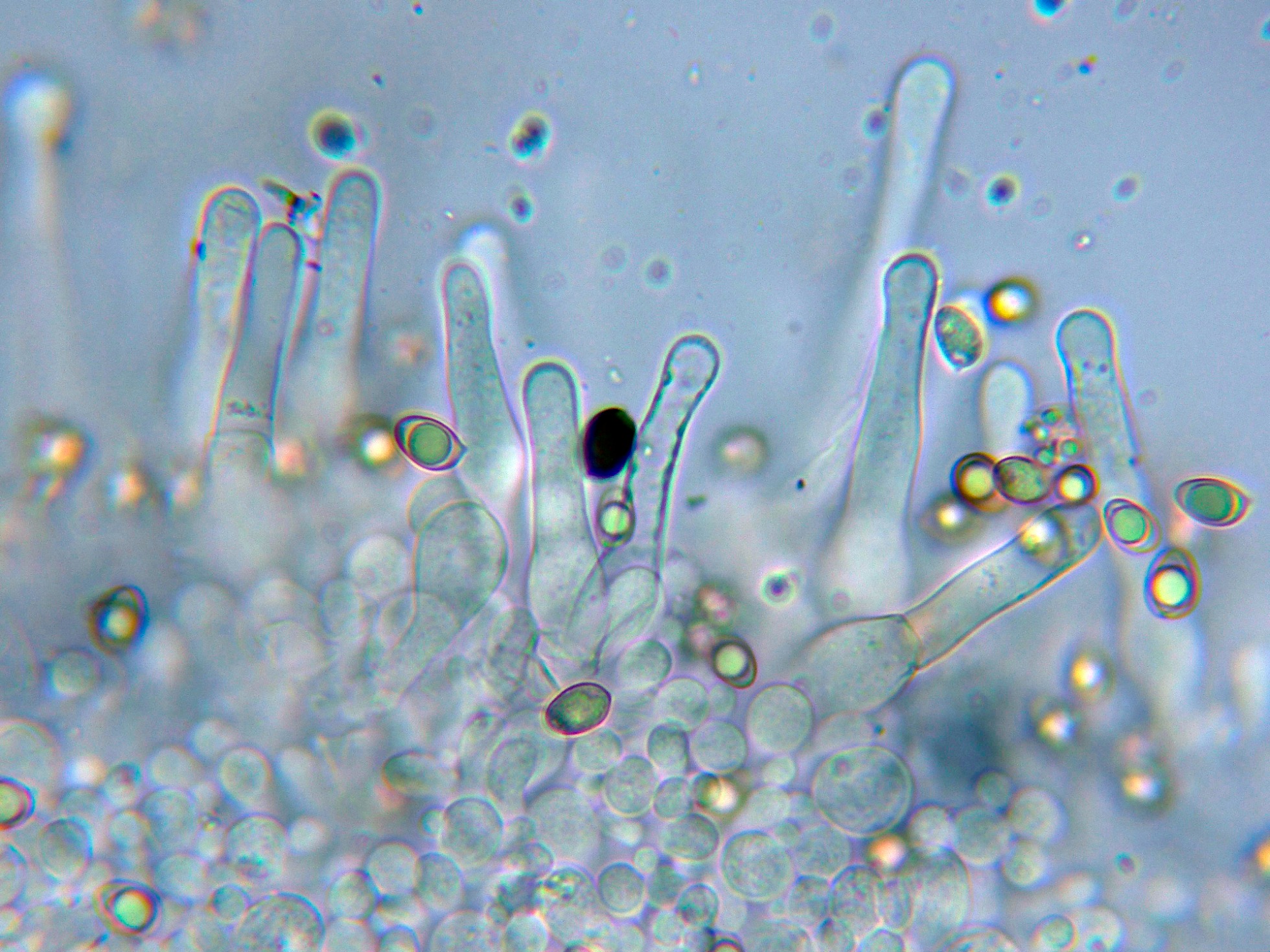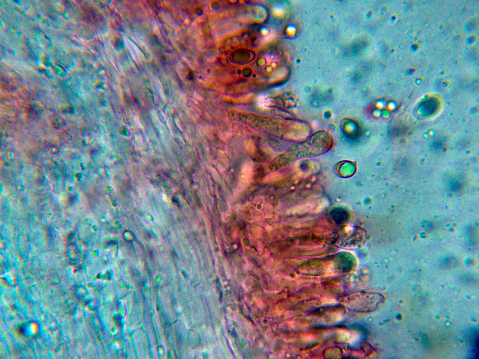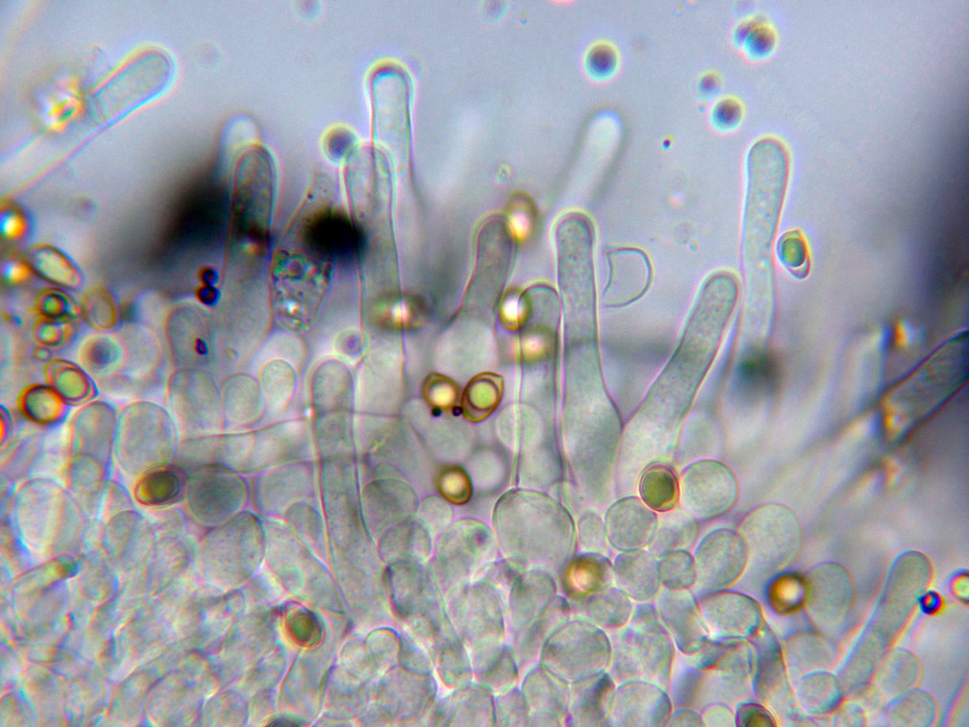 A destacar algunos queilocistidios piriformes mezclados con los cilíndricos: