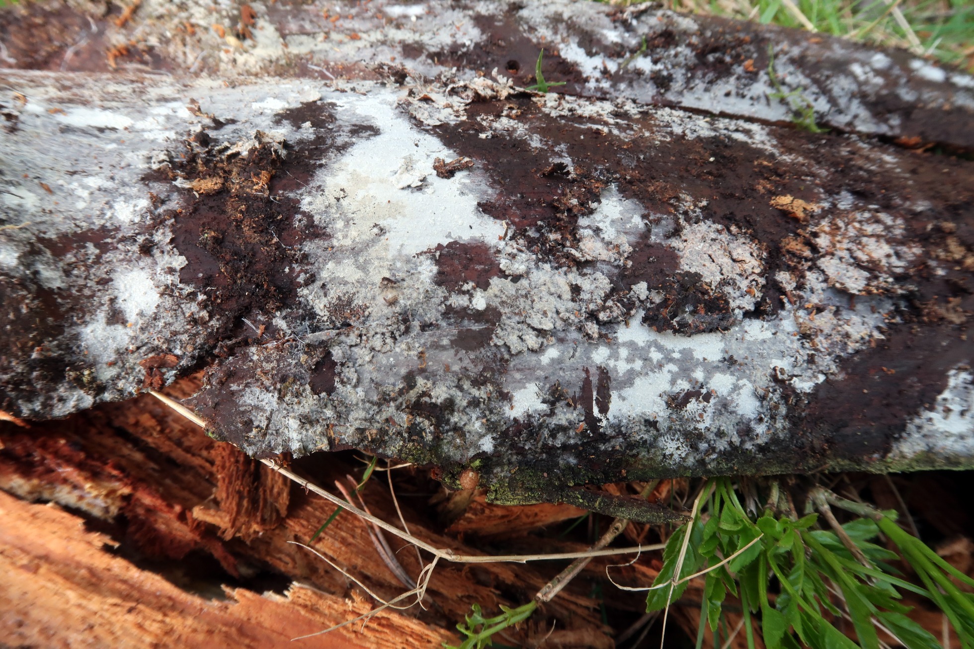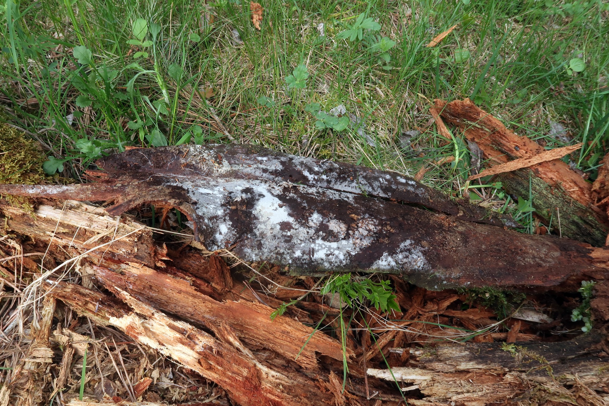 Un Corticial localizado el pasado domingo 15 de Mayo sobre la superficie de un tronco tumbado ya muy degradado de Pinus sylvestris en la parte que está en contacto con el suelo.