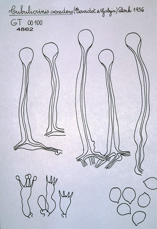 Y por último añado un dibujo con la microscopía de la Tubulicrinis accedens que encaja a la perfección con la del presente estudio: