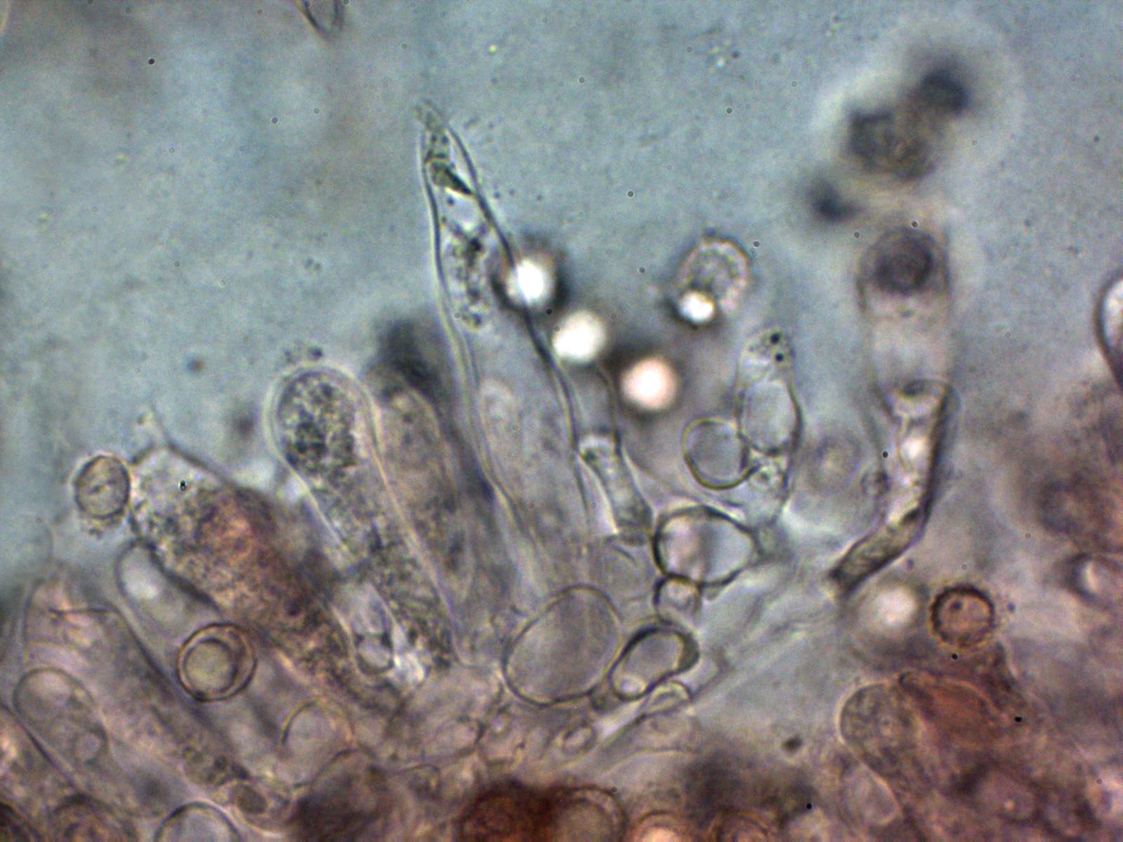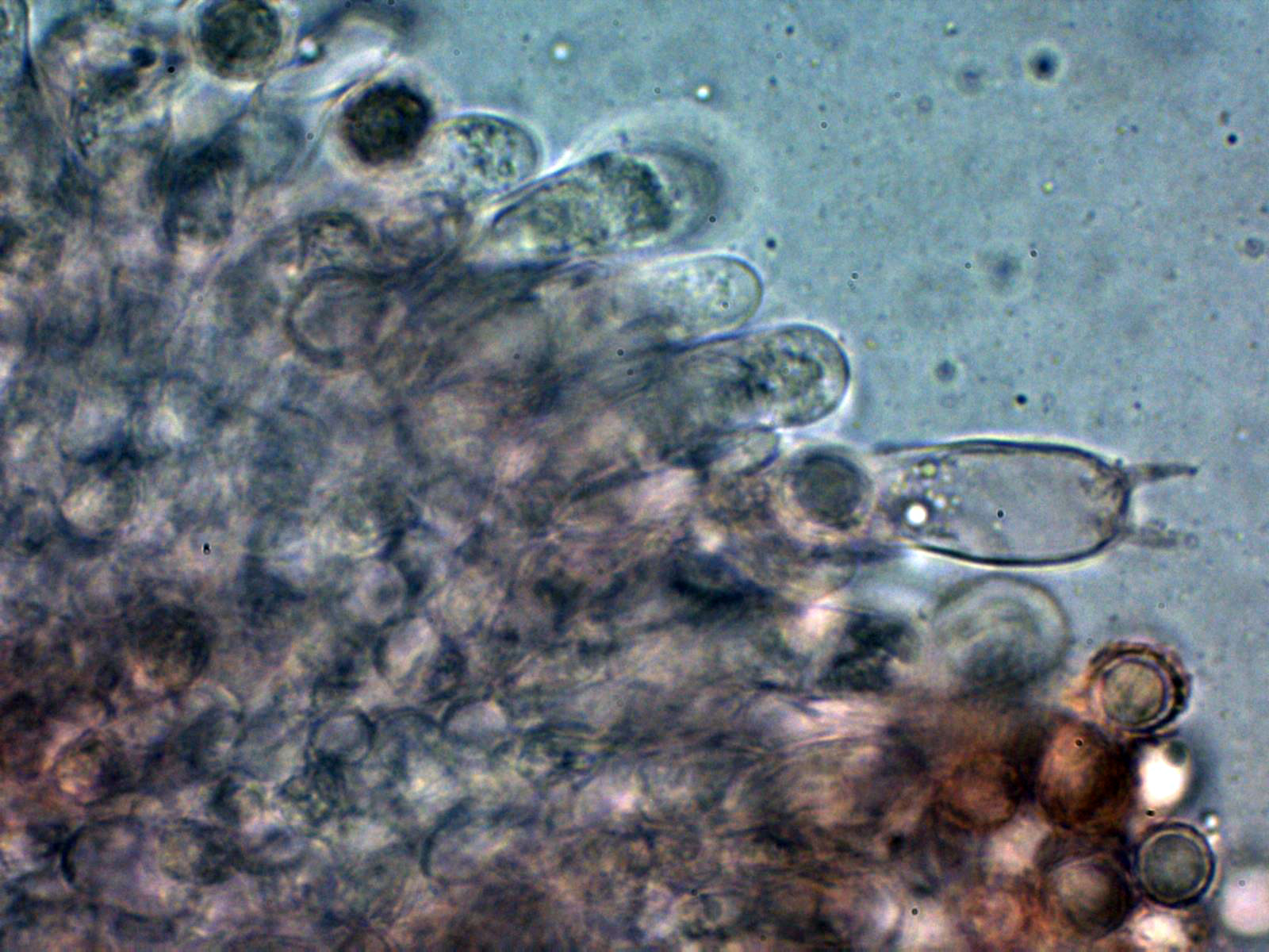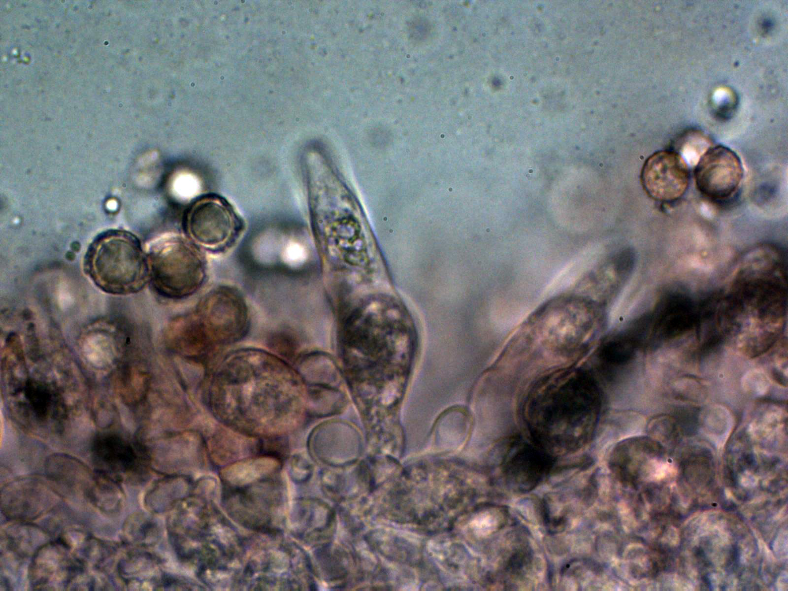 Por debajo de esta capa como es habitual en el género, una abundante presencia de esferocistos.