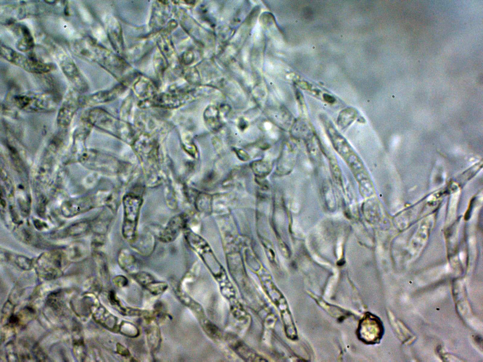 Suprapellis sin dermatocistidios claramente diferenciados, pero con unas hifas terminales ramificadas, con terminaciones algo apuntadas, sin fíbulas y con tenue contenido granuloso en su interior.