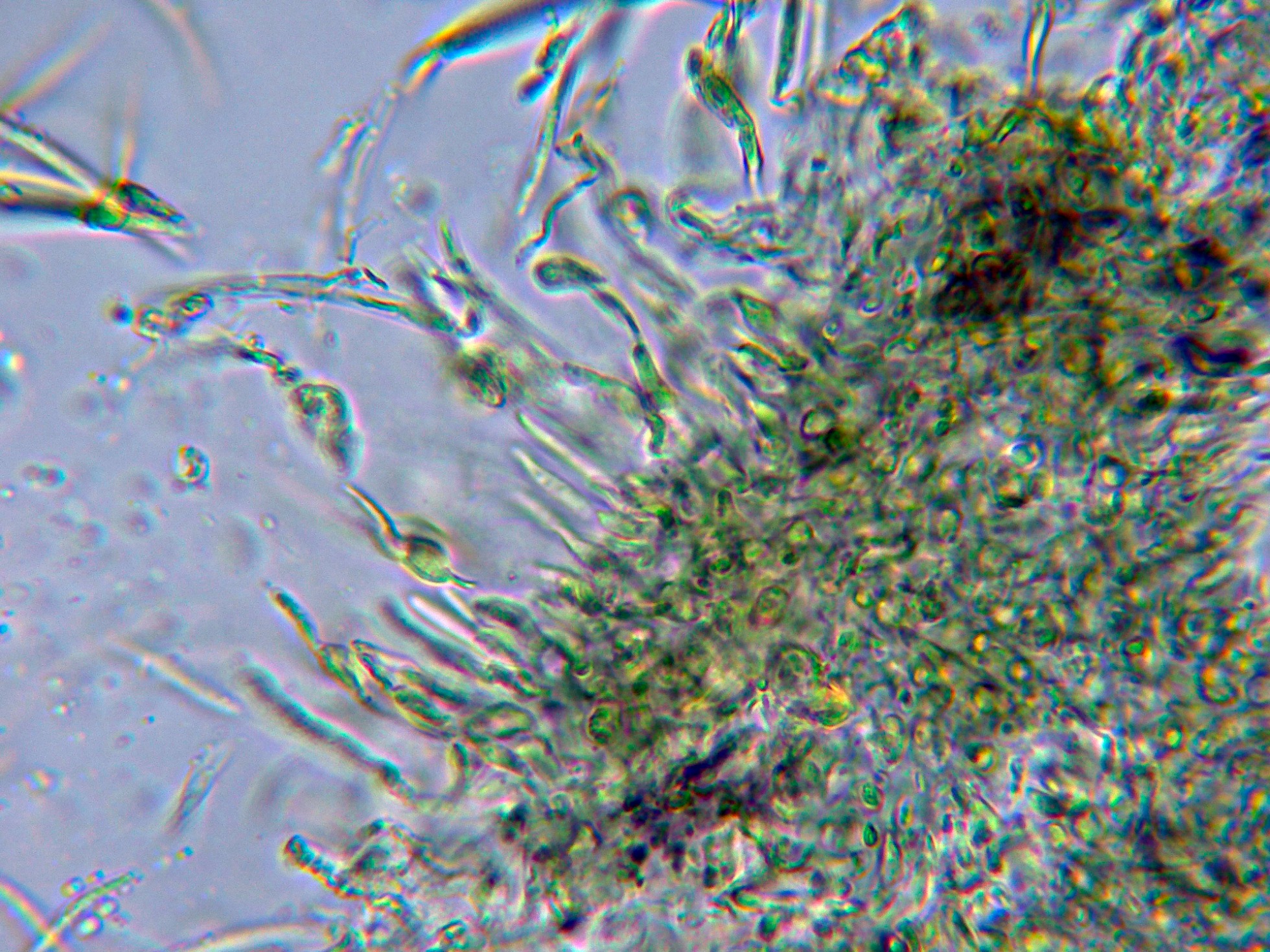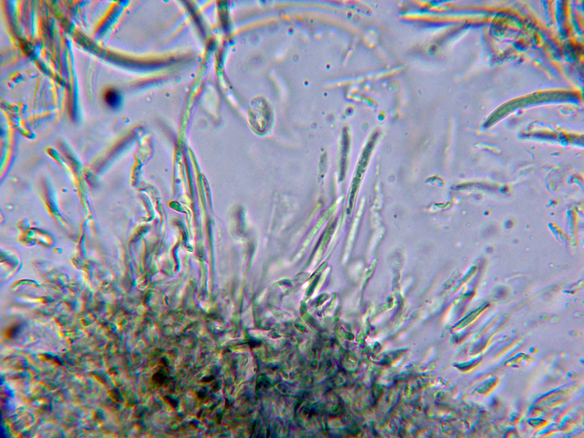 Conidióforos o hifas conidiógenas en Reactivo de Melzer: