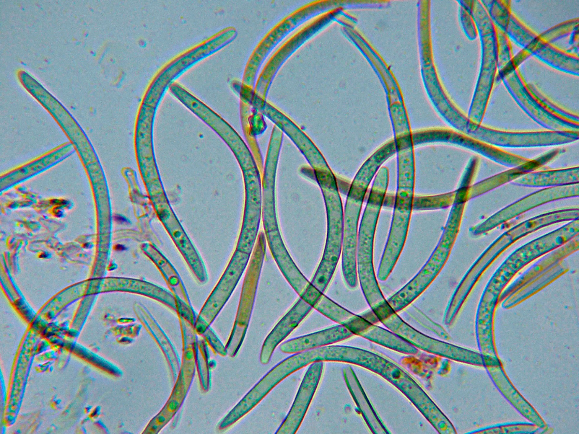 Los conidios en Rojo Congo diluido a 400 aumentos.