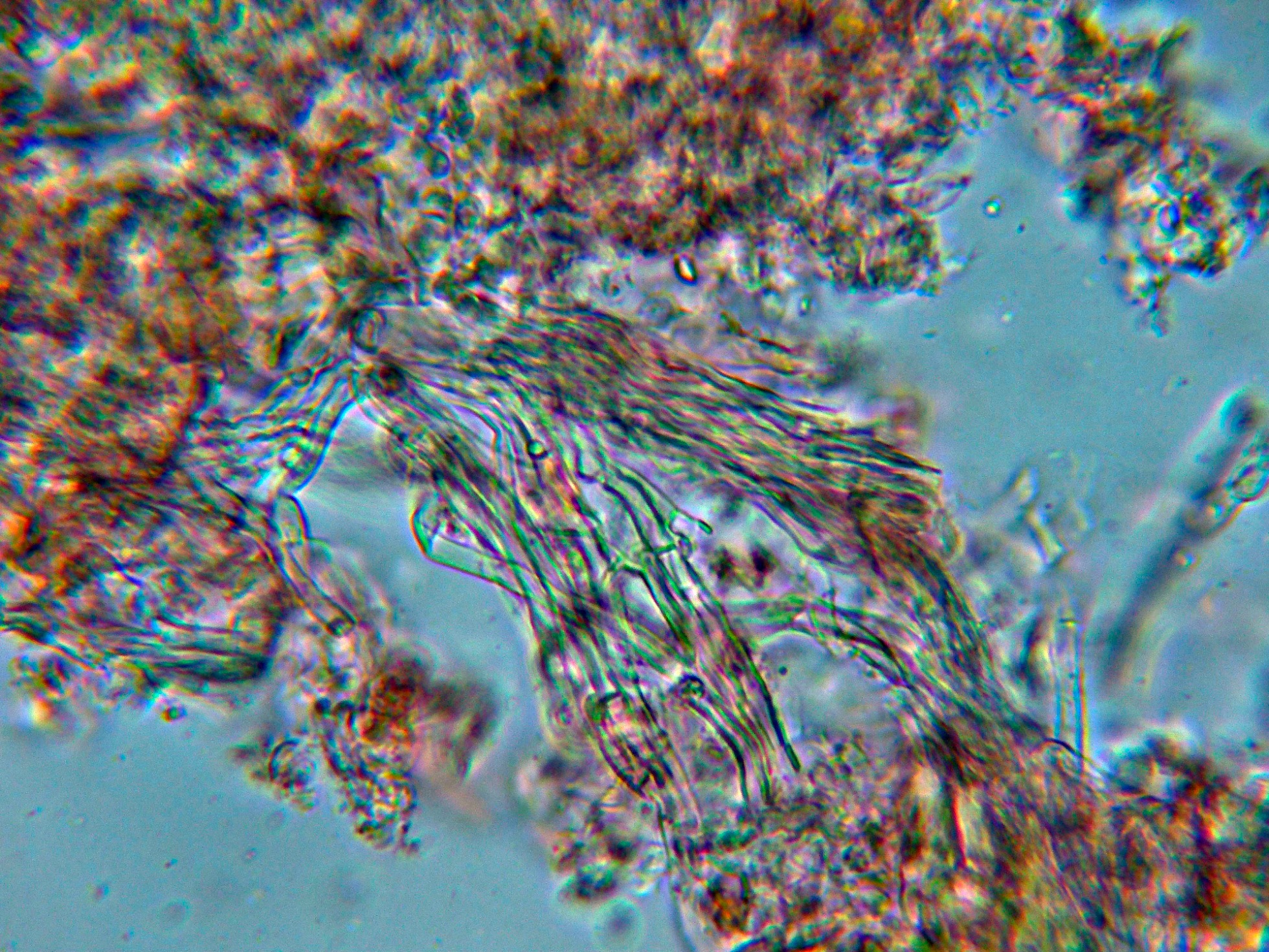Sistema hifal monomítico, formado por hifas generativas hialinas y de pequeño grosor, provistas de fíbulas.