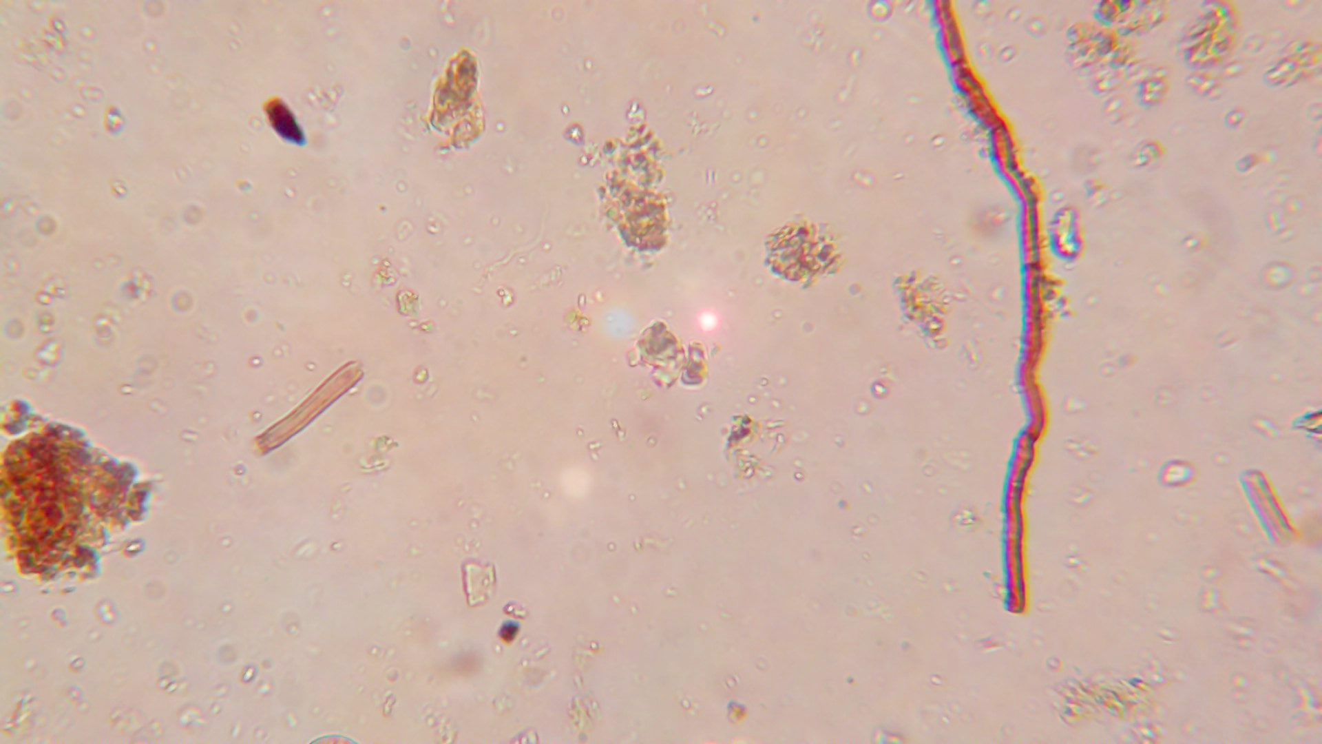 Hola Nicolás, por lo que me indicas en tu mensaje intuyo que estás trabajando con un microscopio trinocular y la cámara la tines colocada en el tercer ocular, si dices que este punto no lo ves si miras por los oculares, puedes probar de colocar la cámara en uno de los dos oculares, así comprobarás si el problema viene directamente de la cámara, quizás esta anomalía se deba al lente adaptador de la cámara, a veces estas circunstancias se corrigen cerrando un poco el objetivo o bajando la intensidad de luz, lo más raro es que solo te suceda con el objetivo de 40x, ya que estas anomalías suelen presentarse en mayor o menor medida en todos los objetivos, has probado con el de 100x con aceite de inmersión?, también es posible que puedas corregir este defecto con una lente filtro por debajo del ajuste de luz, muchos microscopios como el que estoy utilizando ahora llevan una lente mate para evitar estos reflejos, comprueba este punto, estos lentes suelen venir de origen con el microscopio. Para mis trabajos utilizo dos microscopios, ambos trinoculares, y de cámaras dispongo de 3, un cámara BMS de 5 Mpx., otra cámara Optika de 10 Mpx., y una cámara Euromex de 12 Mpx., nunca he tenido ningún problema con estos puntos de luz que se aprecian en tu imágen.