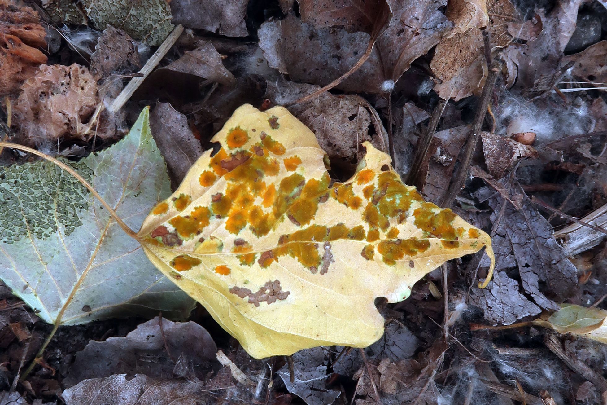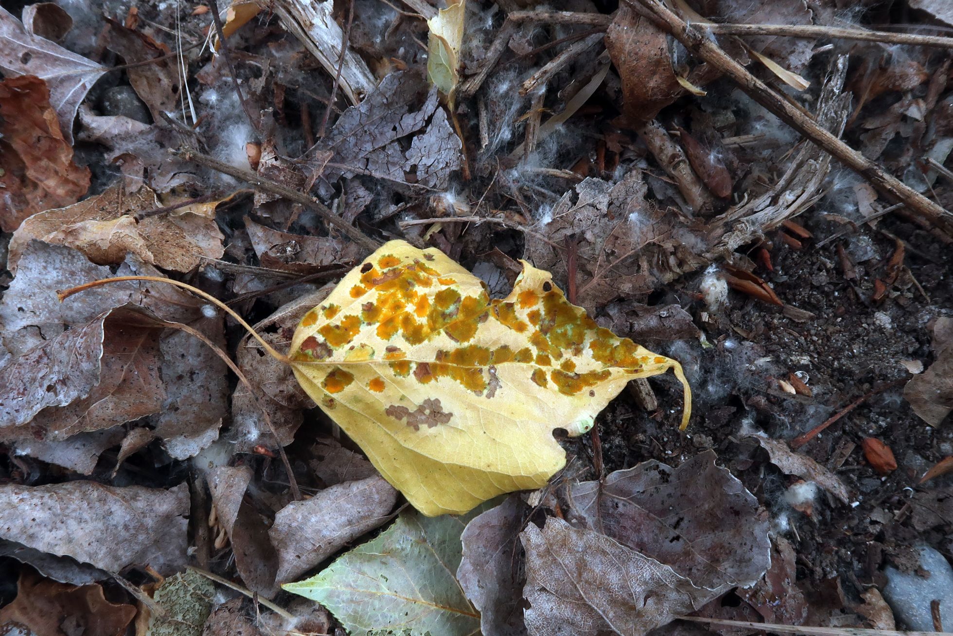 Un hongo nuevo que me he encontrado esta mañana en soto fluvial y sobre una hoja del suelo de Populus nigra.