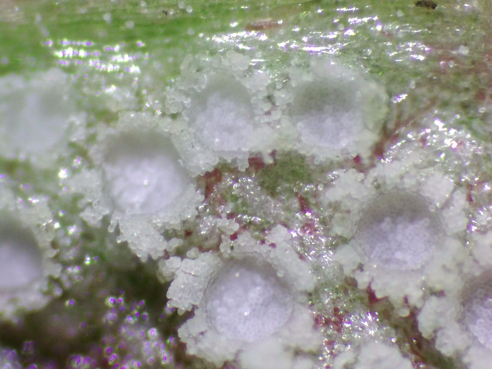 En el caso de esta Puccinia phragmitis me ha sido relativamente sencillo dar con ella por dos obvios motivos, uno es por la planta a la que ha parasitado (en este caso me costo mas dar con en nombre de la planta que del hongo patógeno) y por otro lado y que yo sepa no hay otra Puccinia que ataque a esta planta y sus coronitas sean integramente de color blanco como es este caso.