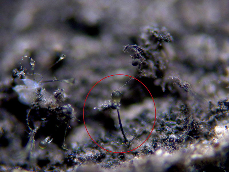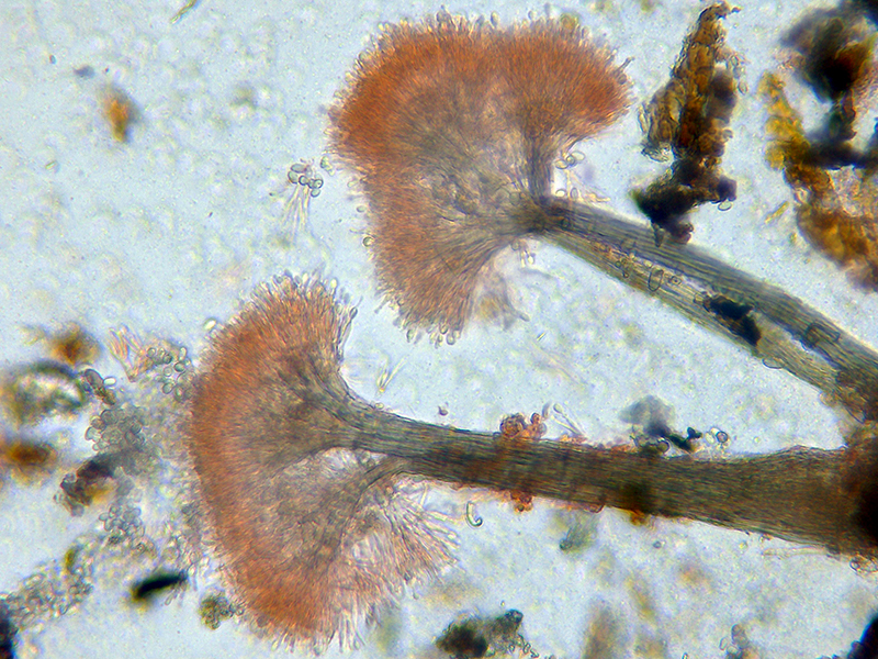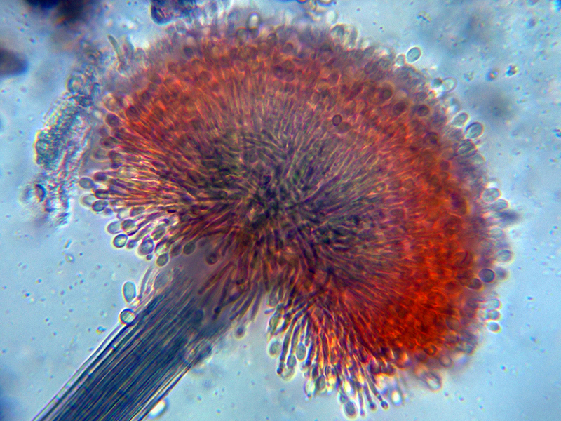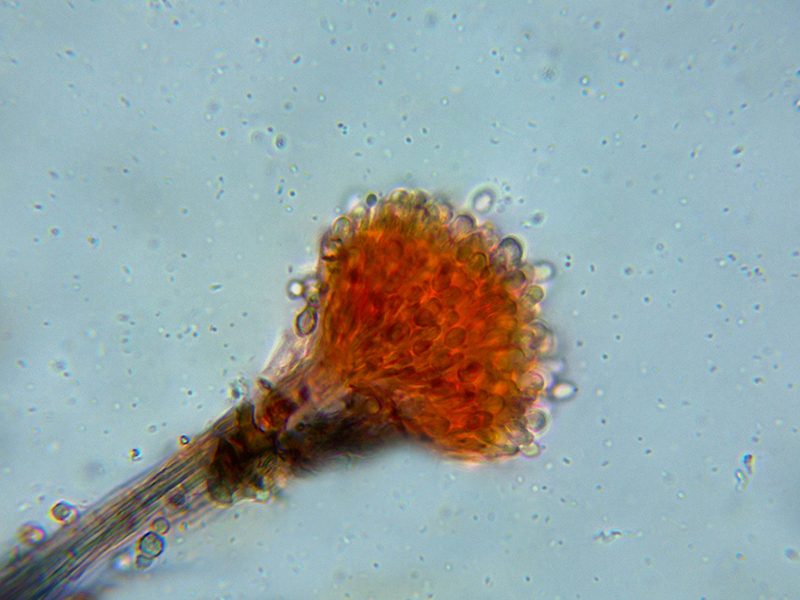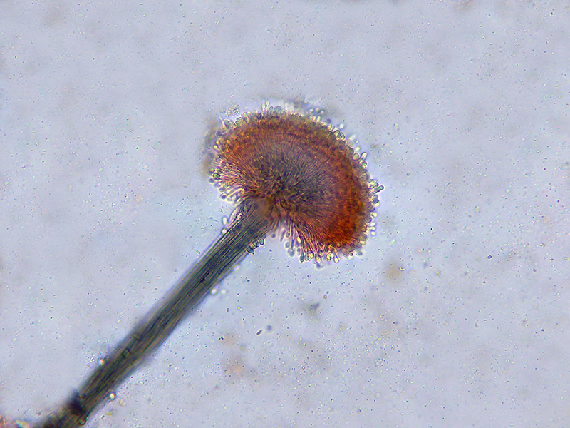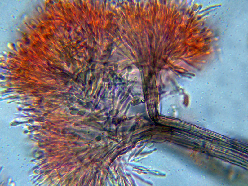 Unas imágenes de los conidióforos a 1000 aumentos que se correspondes a unos apilados de entre 4 y 8 imágenes: