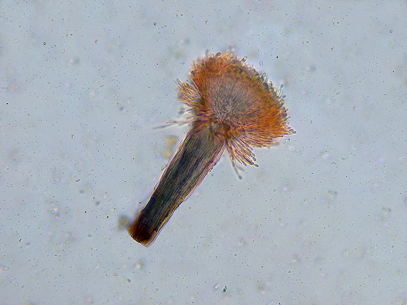 Synnema de una altura total de apenas 0,3 mm., con una cabeza globosa de tan solo entre 37 a 55 micras.