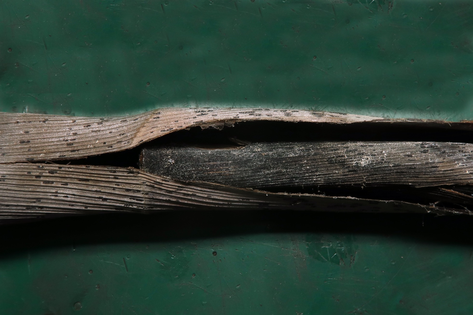 Unos synnemata sobre la corteza de un pequeño tronco de un primordio de alguna especie de palmera, probablemente Dypsis lutescens.