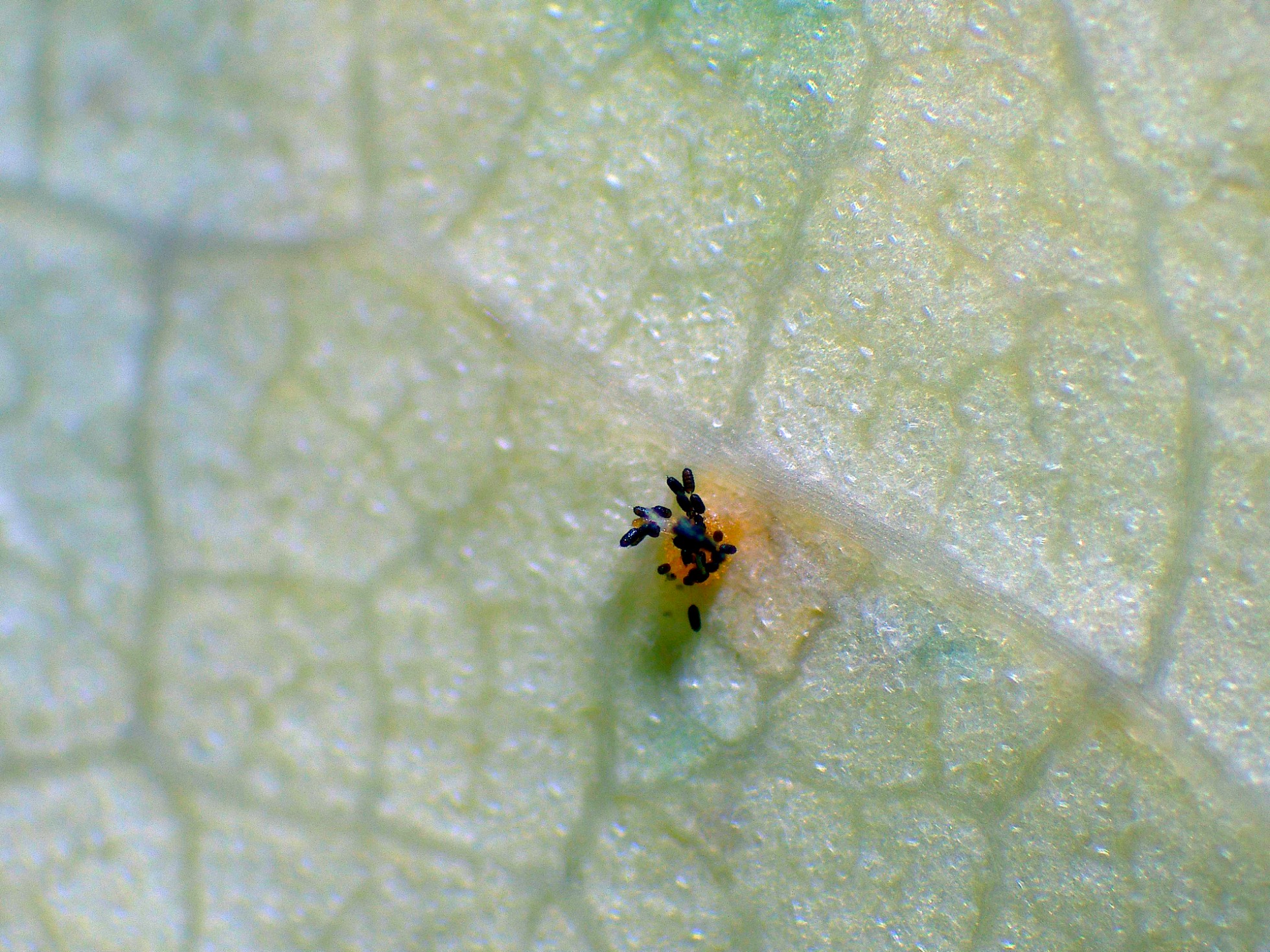 Y cultivando las hojas al día siguiente y sobre estos mismos ecios ya habían aparecido los telios.