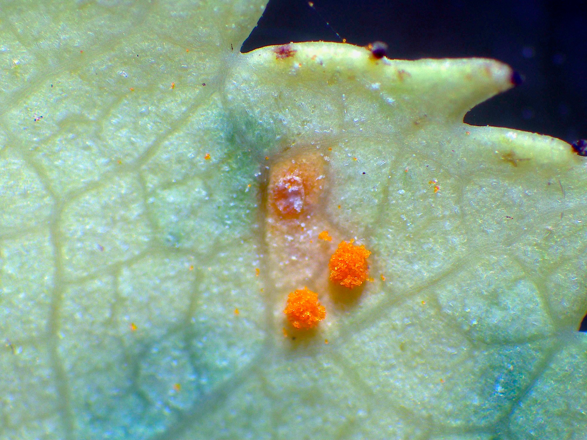 Un Puccinial localizado el pasado domingo en soto fluvial y sobre unas hojas de Rosa canina.