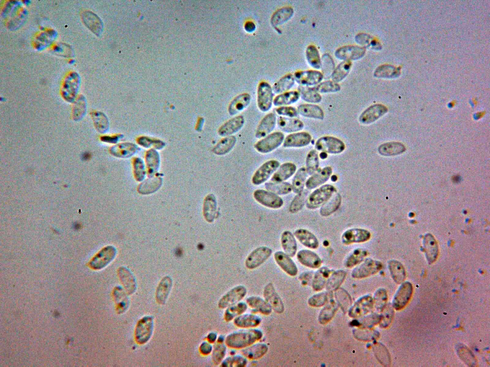 En un examen preliminar al no poder observar fíbulas, este detalle me descolocó enormemente, para salir de dudas no tuve más remedio que recurrir al análisis molecular el que determinó que se trataba con una coincidencia del 99.77% de Antrodia hyalina OM281603, A. pulvinascens EU340899, los datos microscópicos obtenidos y en especial las cortas medidas esporales parecen descartar la Antrodia hyalina y entran bastante bien dentro del rango de lo que se podría considerar como: