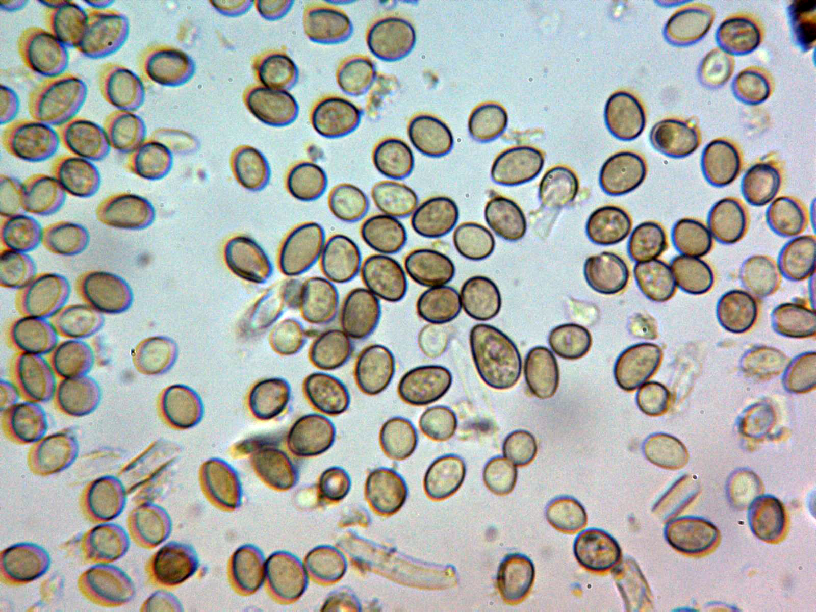 Observaciones: A pesar de haberlo encontrado en repetidas ocasiones, nunca me ha parecido ver en su fase sexual o perfecta, y admito que hasta ahora incluso desconocía por completo de su existencia, el Hypoxylon crocopeplum no lo había oído nunca antes y la información sobre el mismo que podamos encontrar en la red es prácticamente nula, solo la expuesta en las Claves en las que se indica que se trataría de una especie tropical, prácticamente desconocida en Europa, aunque localizada en Francia bajo Fraxinus y Ulmus, asimismo se advierte que este Hypoxylon en el Continente Europeo se confundiría fácilmente con el Hypoxylon rubiginosum, curiosamente este último lo he estudiado en 7 ocasiones, y en todos los casos la microscopía me ha coincidido con la indicada en la descripción de las Claves con esporas de 8-11 x 4-5-5 µm., en ningun caso superaban las 5,5 µm. de anchura, y el Hypoxylon crocopeplum lo describen con esporas de 11,4-14,4 x 6-7,2 µm. con un tamaño considerablemente mayor, especialmente en anchura.