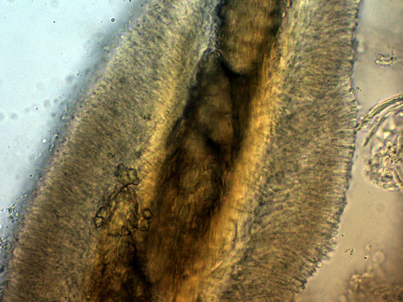 Sección del acúleo a 400 aumentos en KOH: