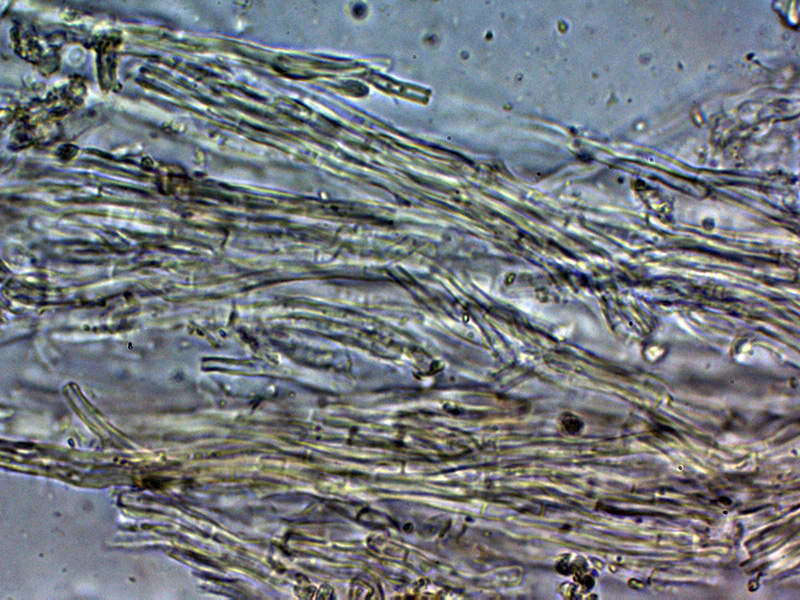 Sistema hifal aparentemente monomítico con hifas de tabiques simples, sin fíbulas.