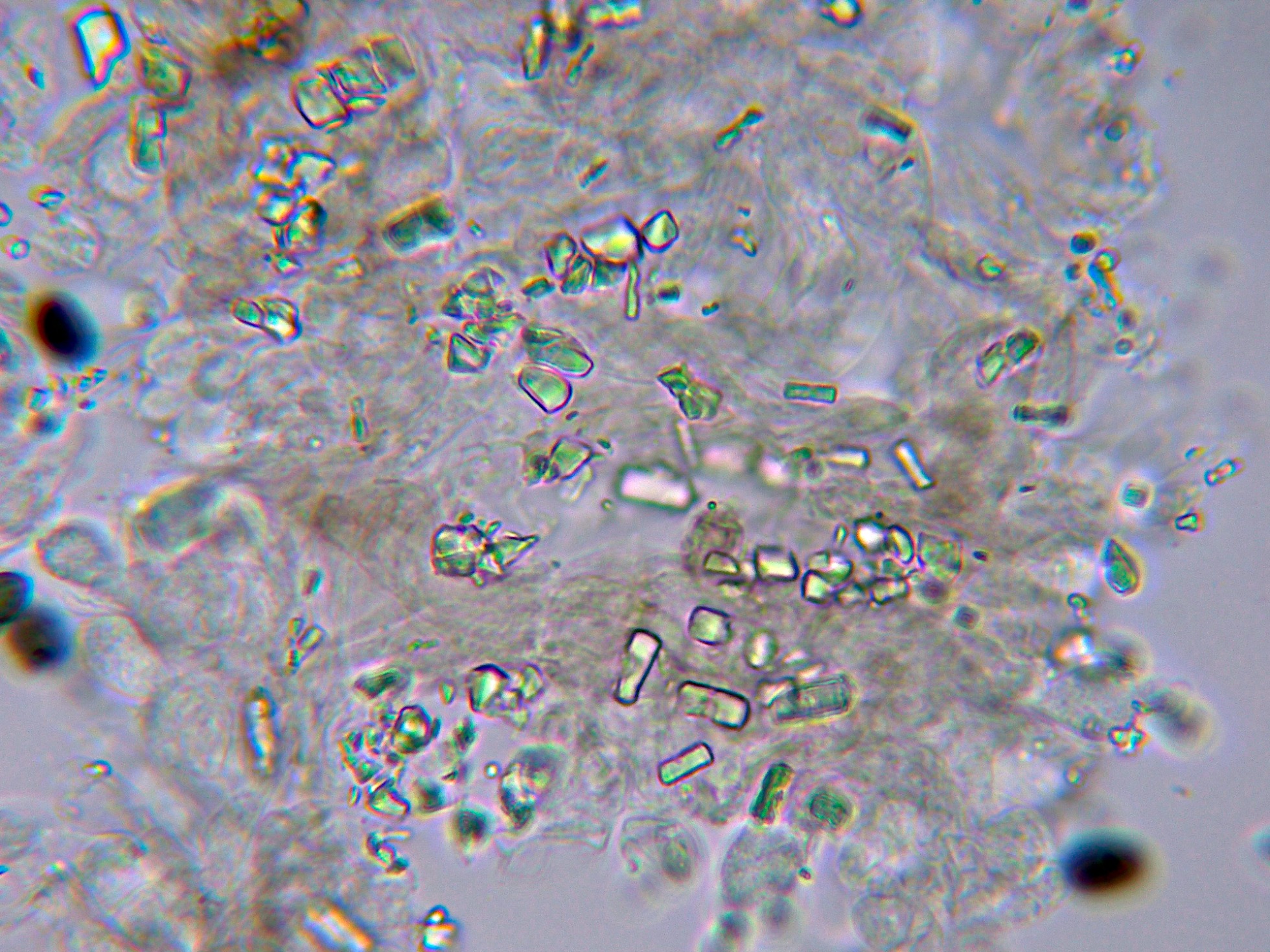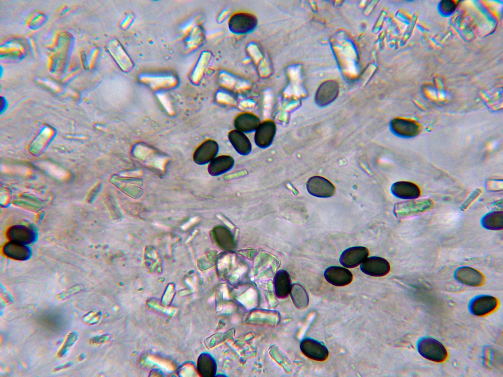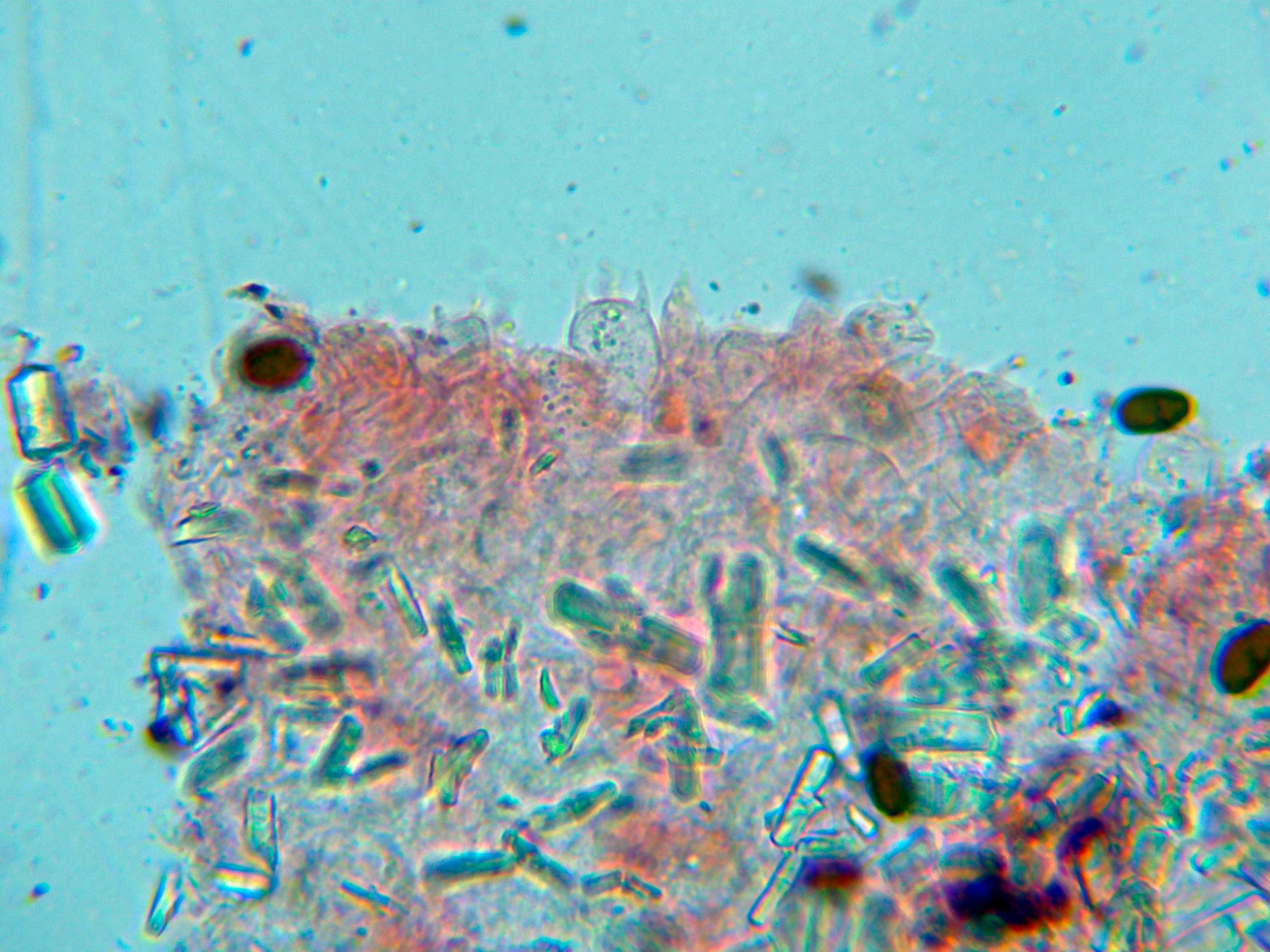 Observaciones: En este caso admito que siguiendo las Claves, dadas sus características su determinación no habría resultado extremadamente difícil, el único motivo por el que opté por la secuenciación fue por la gran cantidad de cristales observados, este dato por mucho que he buscado en la bibliografía, no lo cita ningun autor en la descripción de la especie aquí descrita.