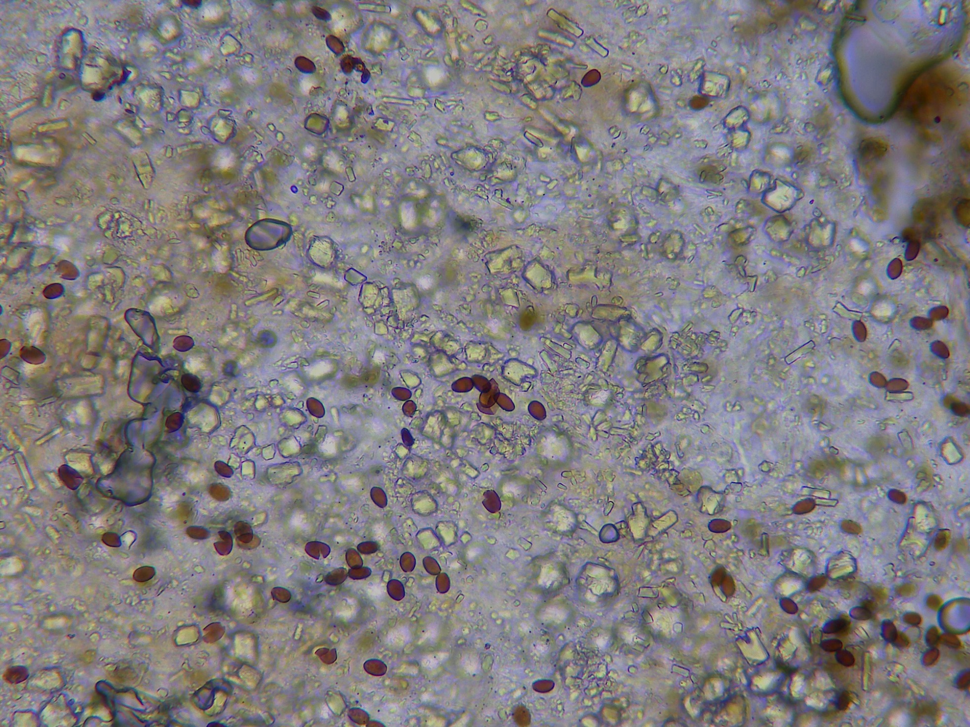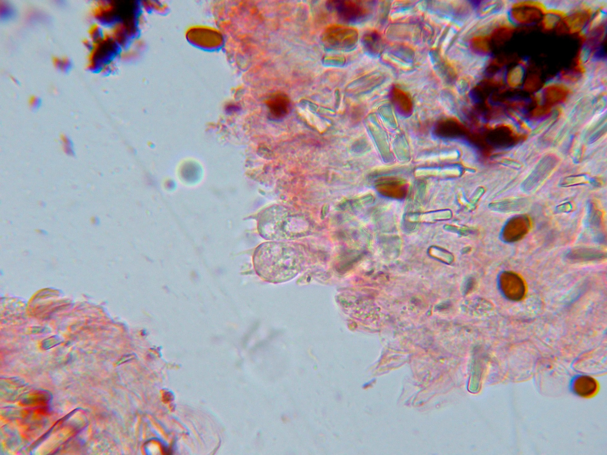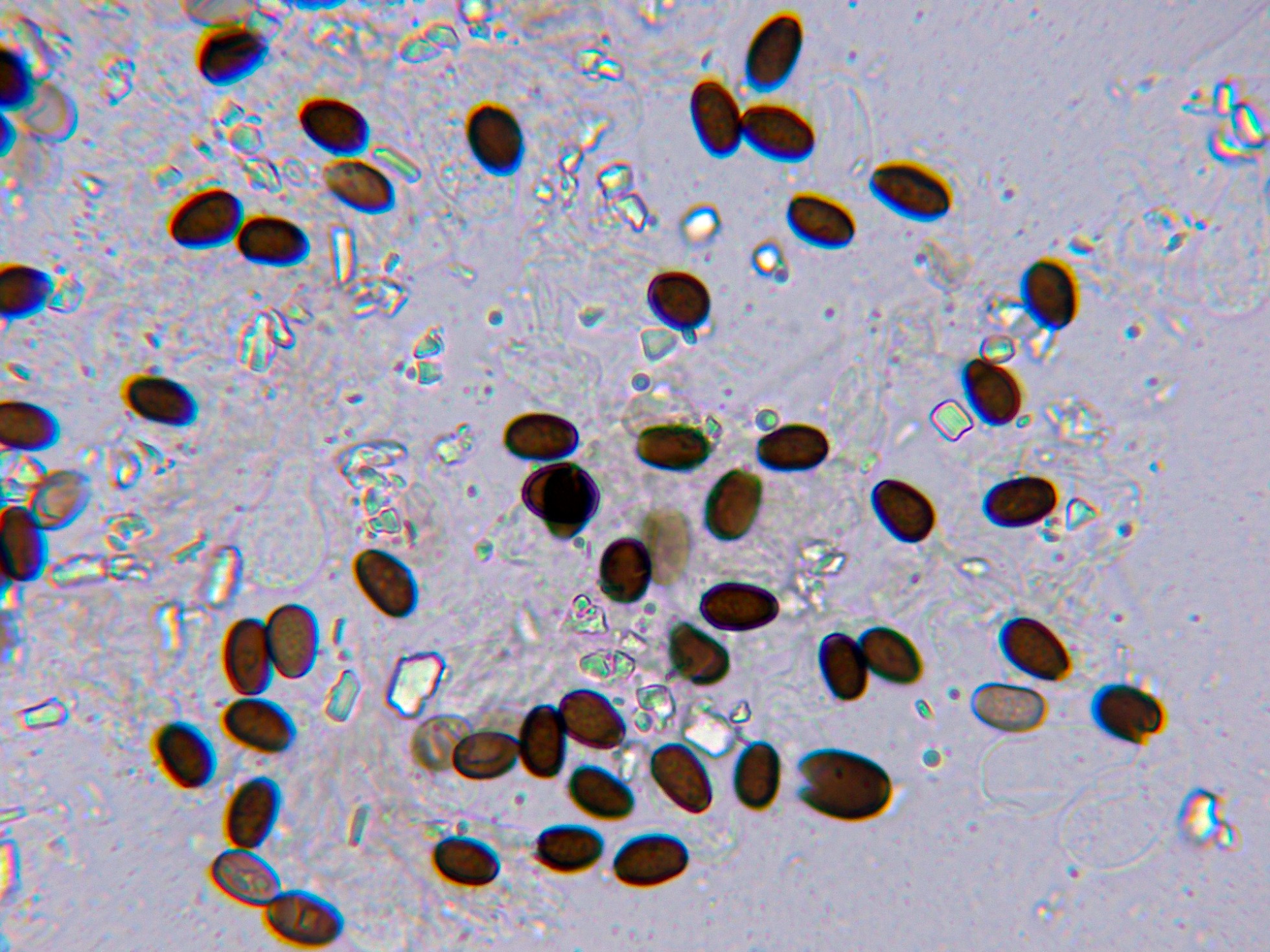 Y por último las esporas en KOH, de color gris oscuro: