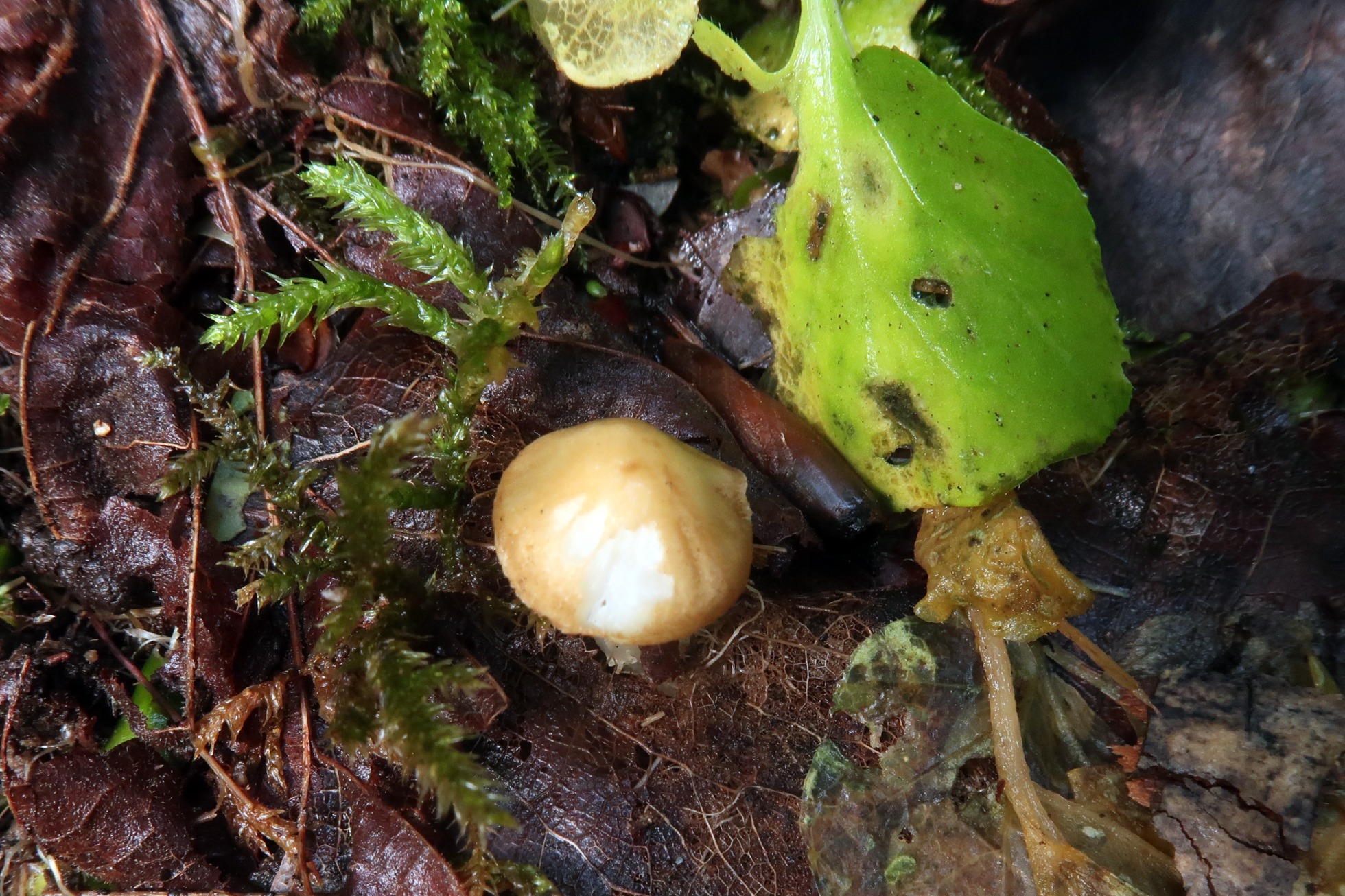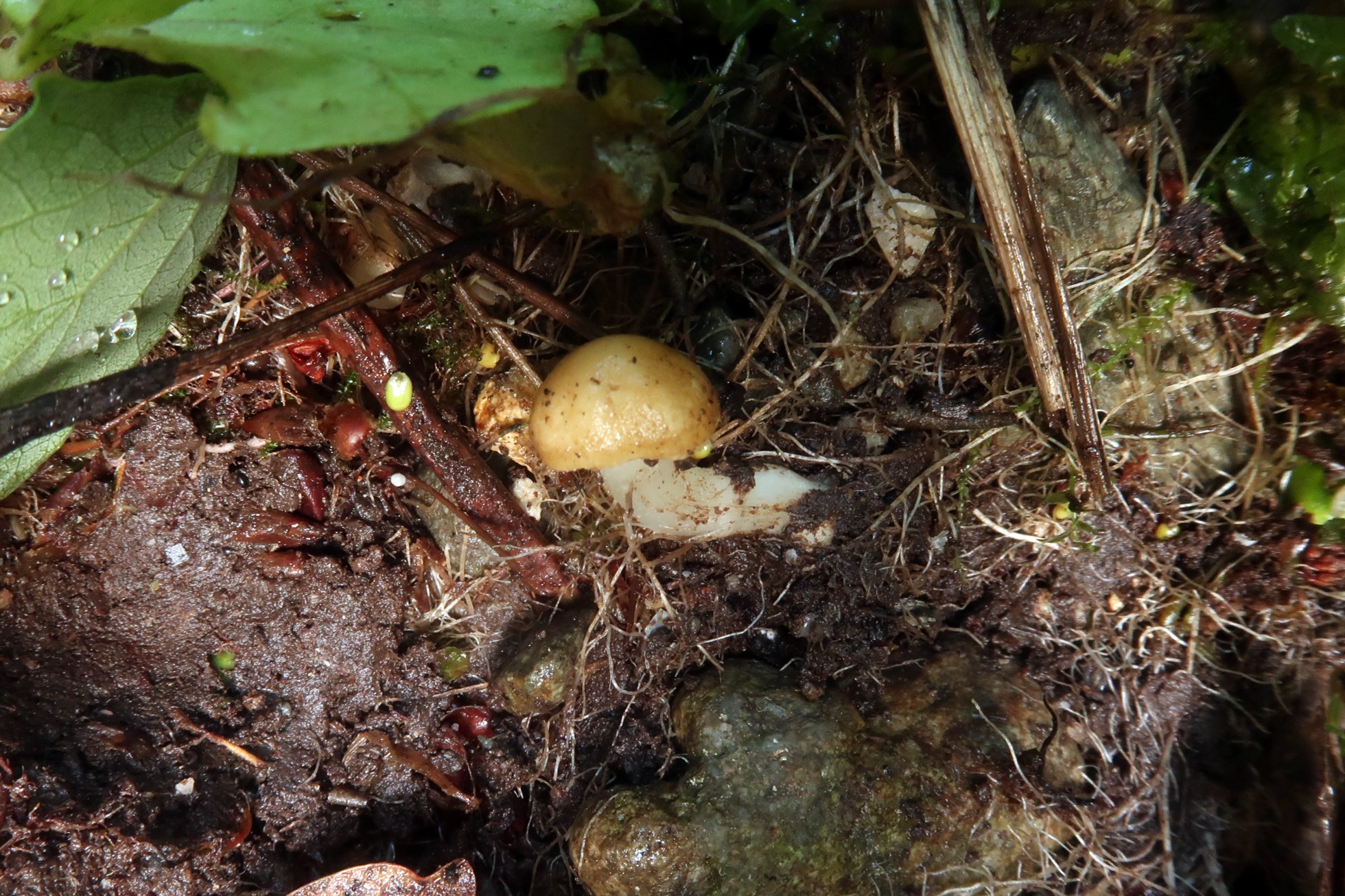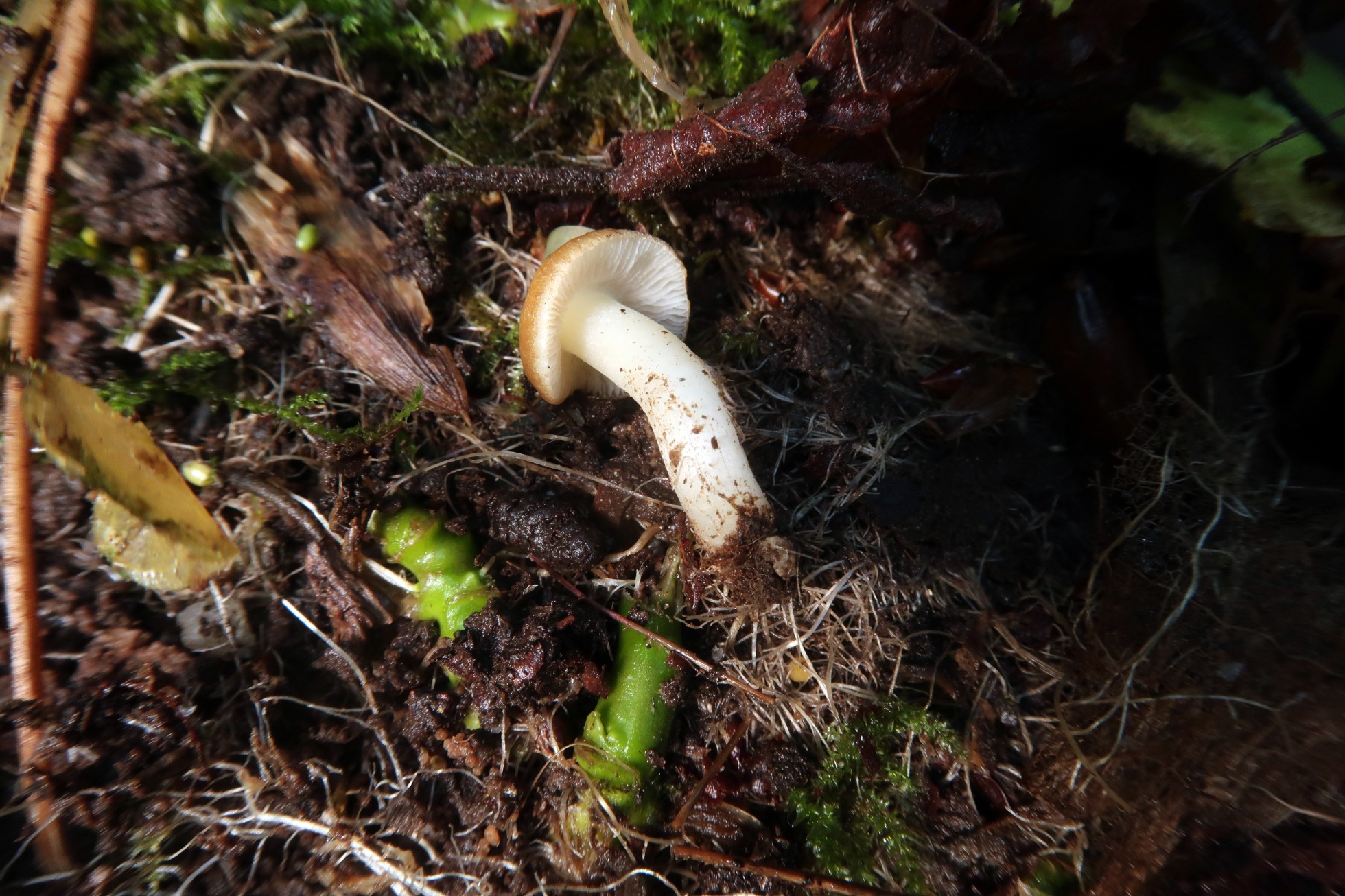 Solo un par de ejemplares, el mayor con un sombrero de apenas poco más de 2 cm., liso, sin fibrillas radiales y bastante viscoso, probablemente por la humedad del entorno.