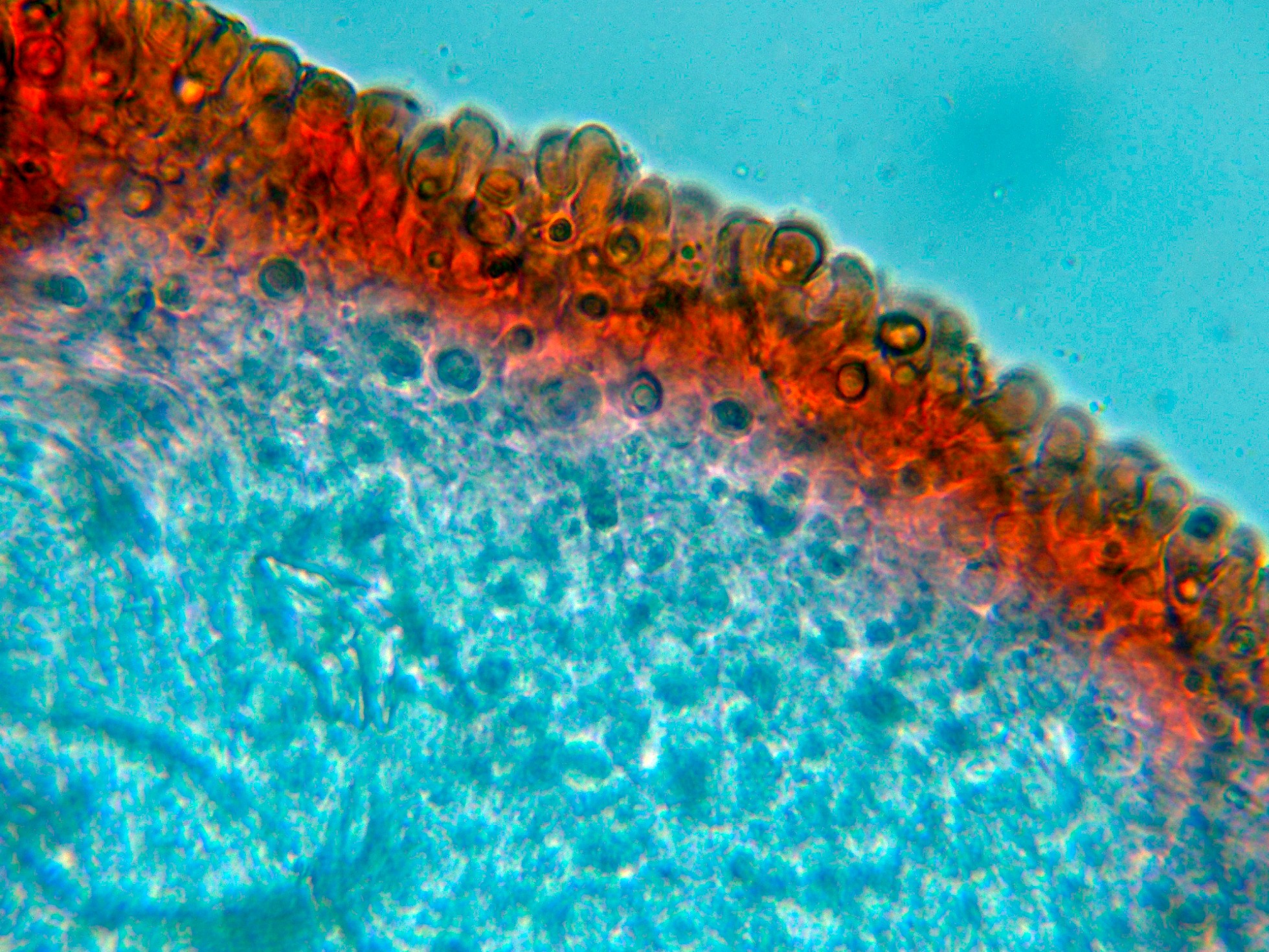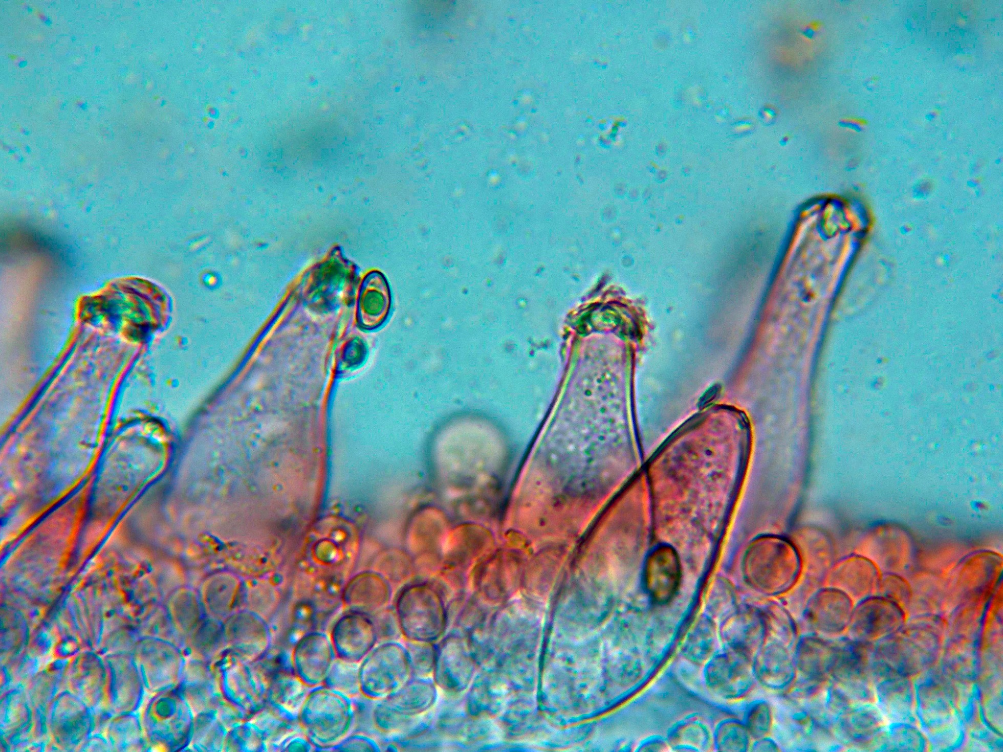 Queilocistidios en solución de Rojo Congo diluído: