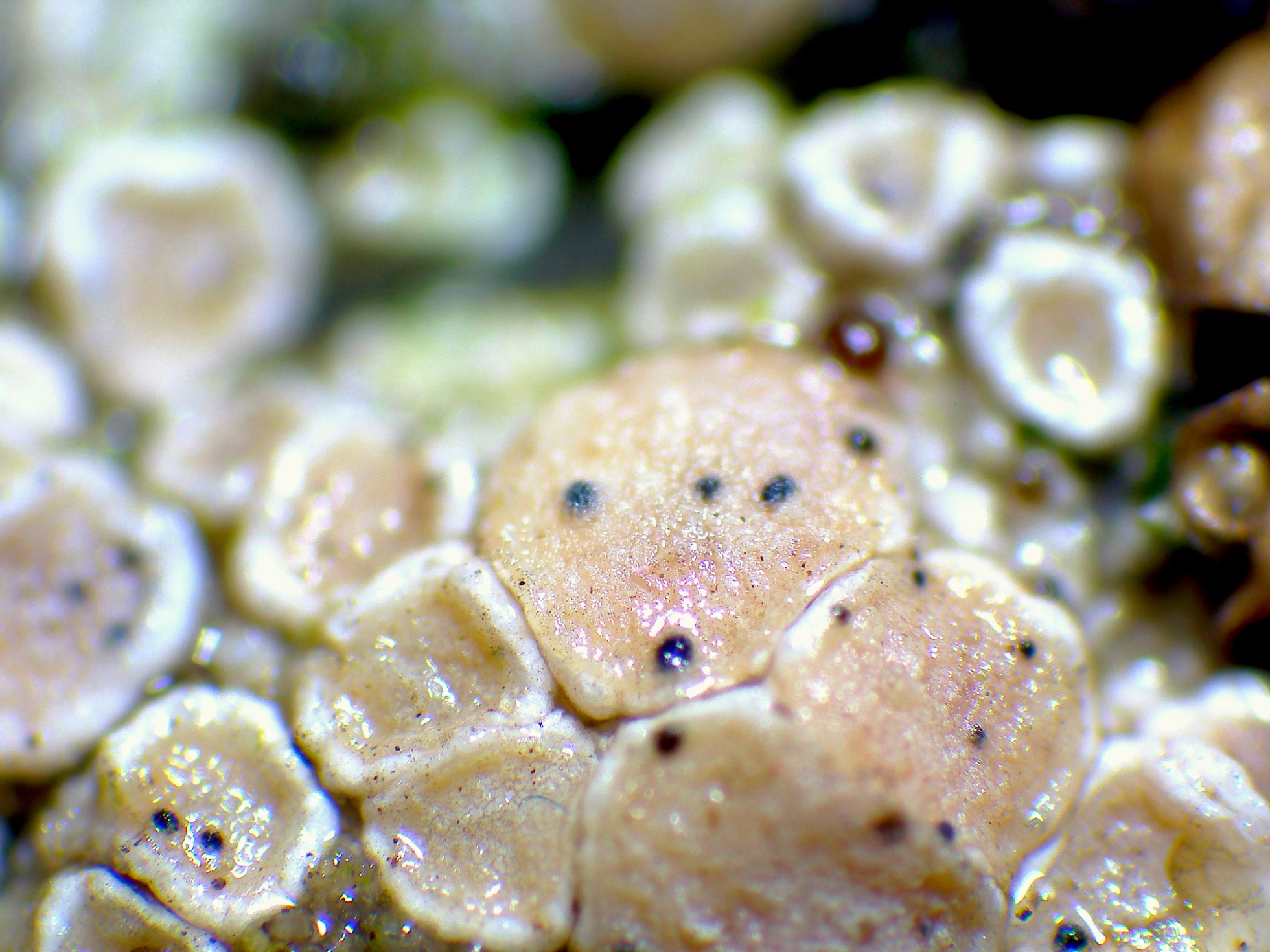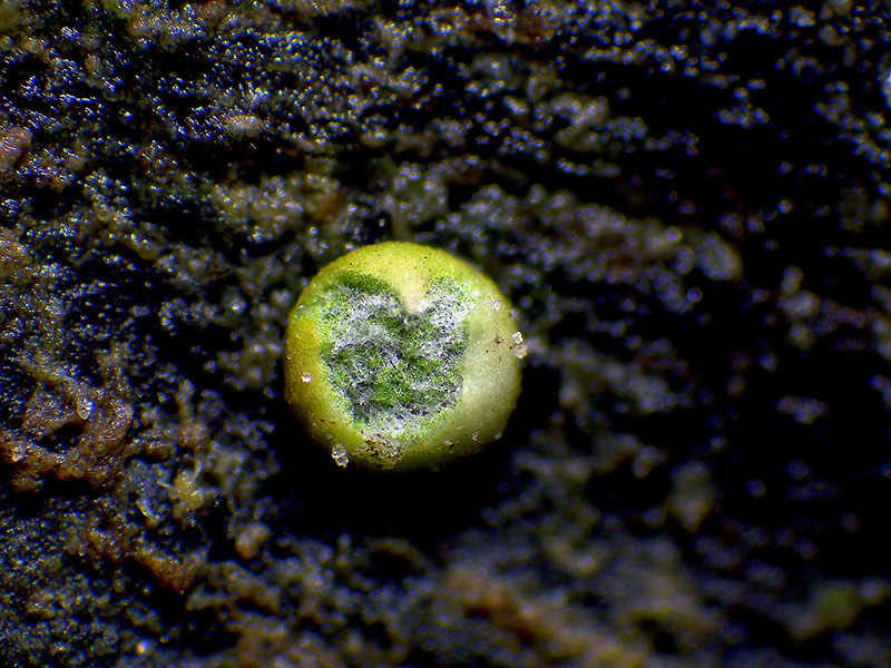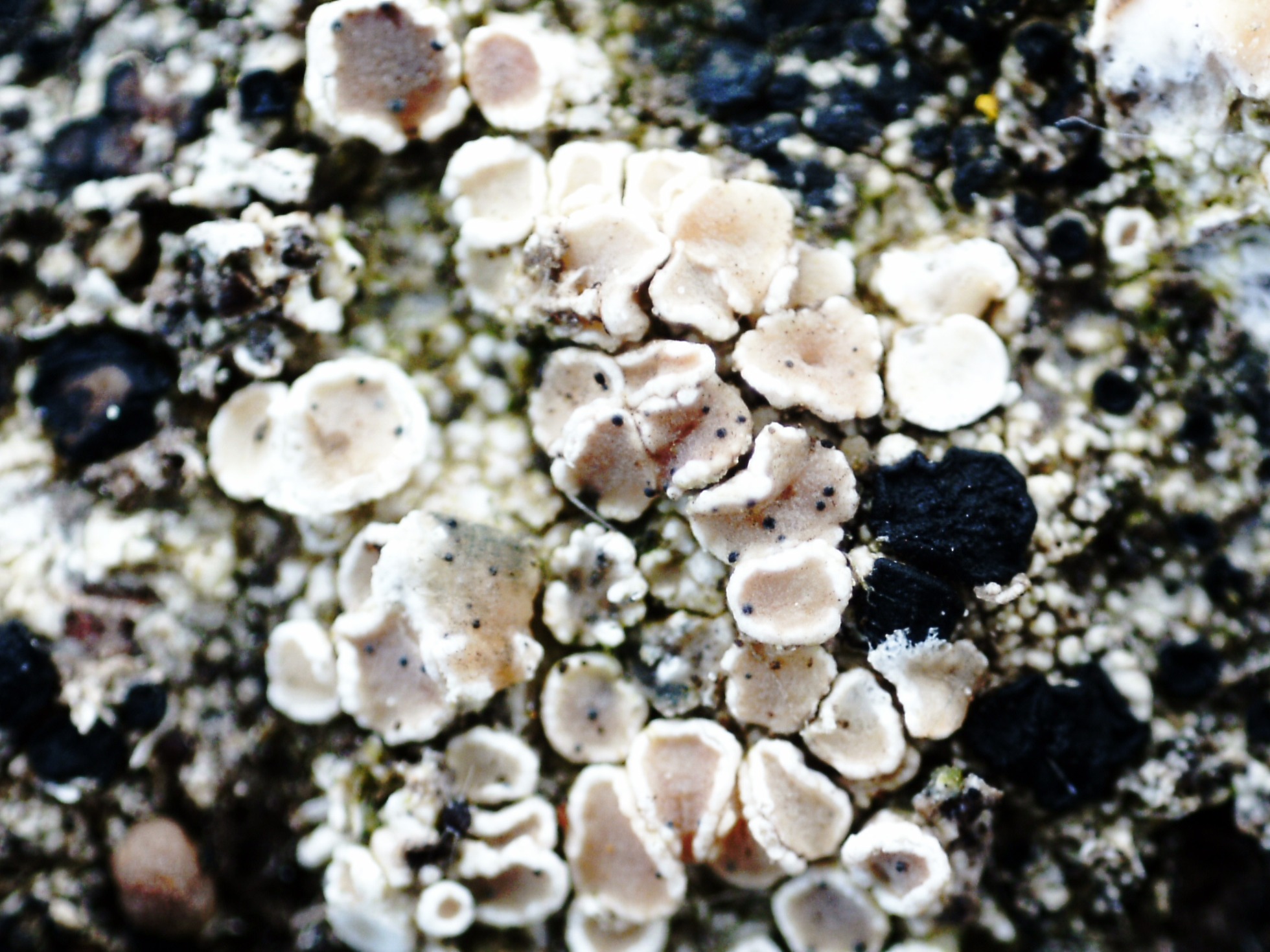 Y ahora un parásito sobre un liquen cortícola, probablemente una Lecanora spp.