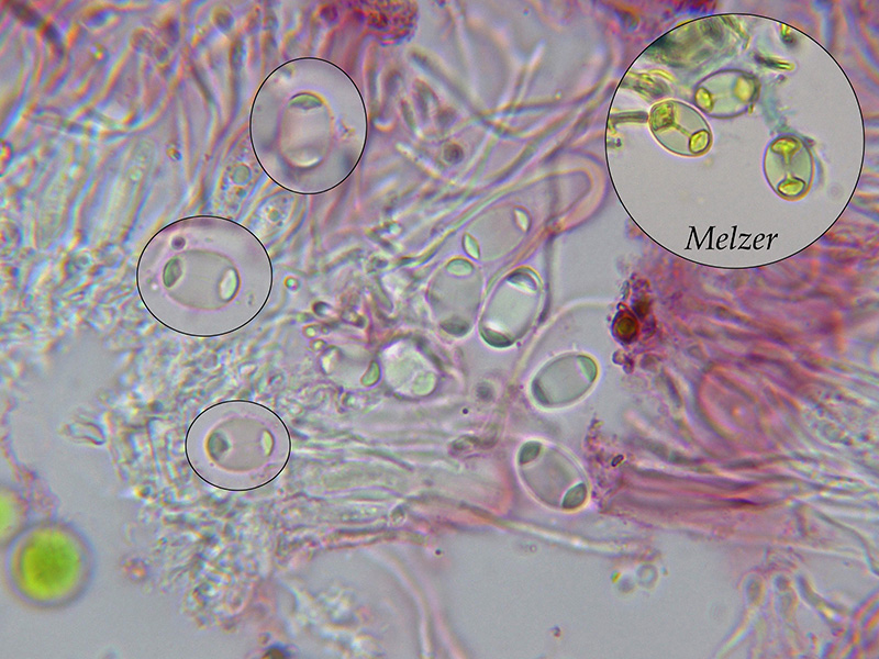 Himenio con comportamiento fuertemente amiloide con el Reactivo de Melzer.