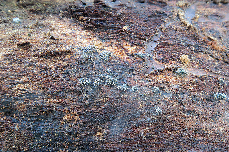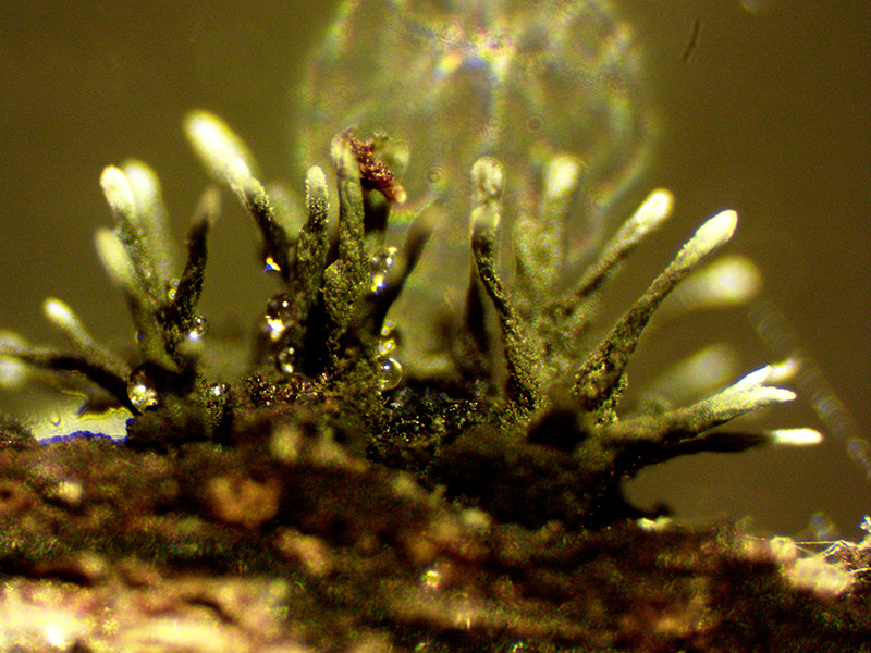 Unos synnemata en formaciones de pequeños grupos con una base común, sobre la superficie de un tronco de árbol tropical indeterminado recogidos este pasado miércoles en la República Dominicana y prácticamente al nivel del mar.