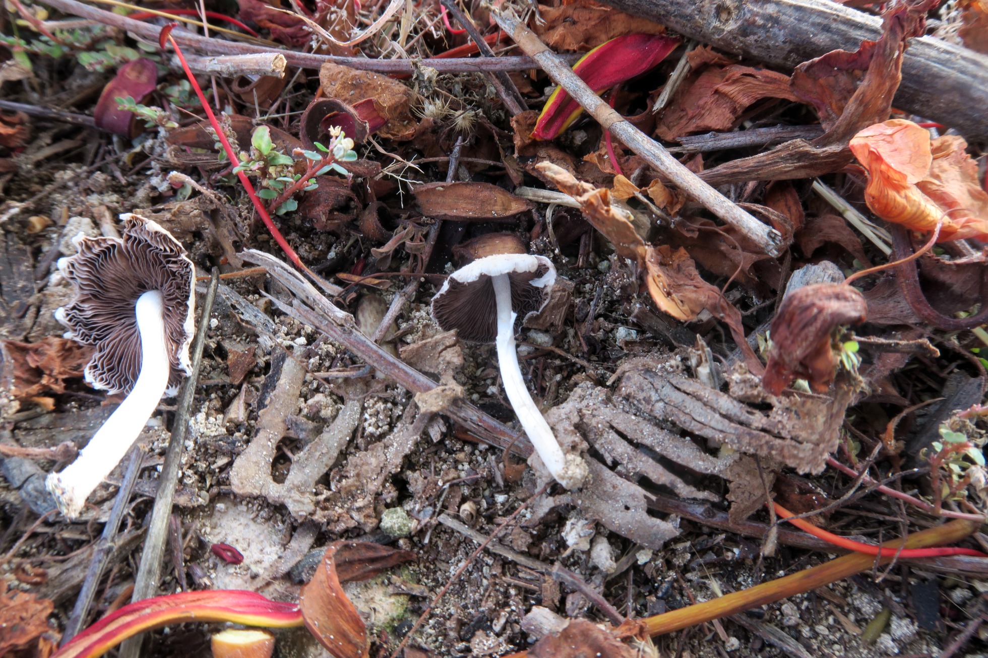 Un grupito de 3 ejemplares con otros sueltos apareciendo de manera dispersa, probablemente asociados a raíces.