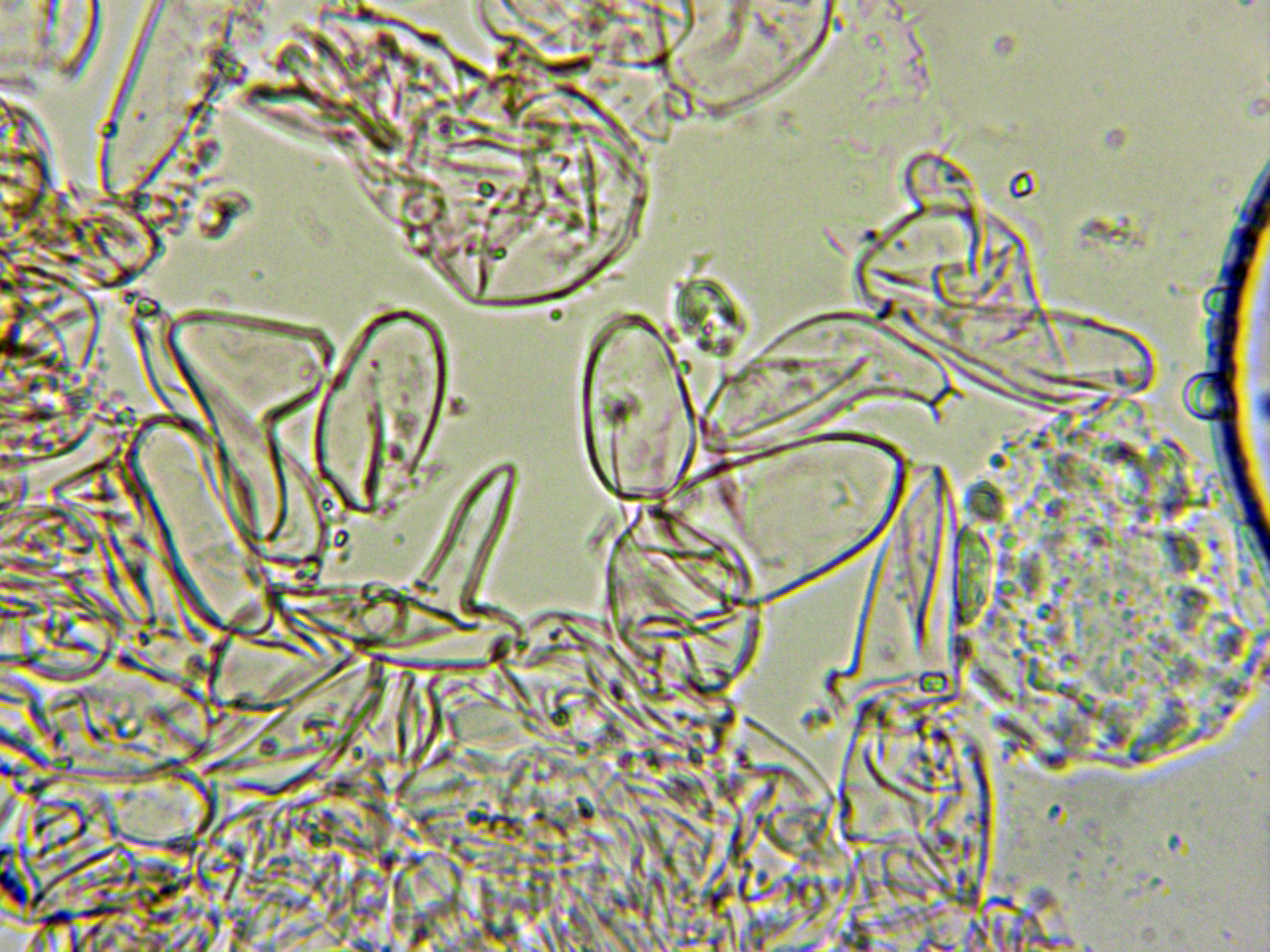 Abundantes caulocistidios en la parte alta del pie, entre lageniformes y utriformes:
