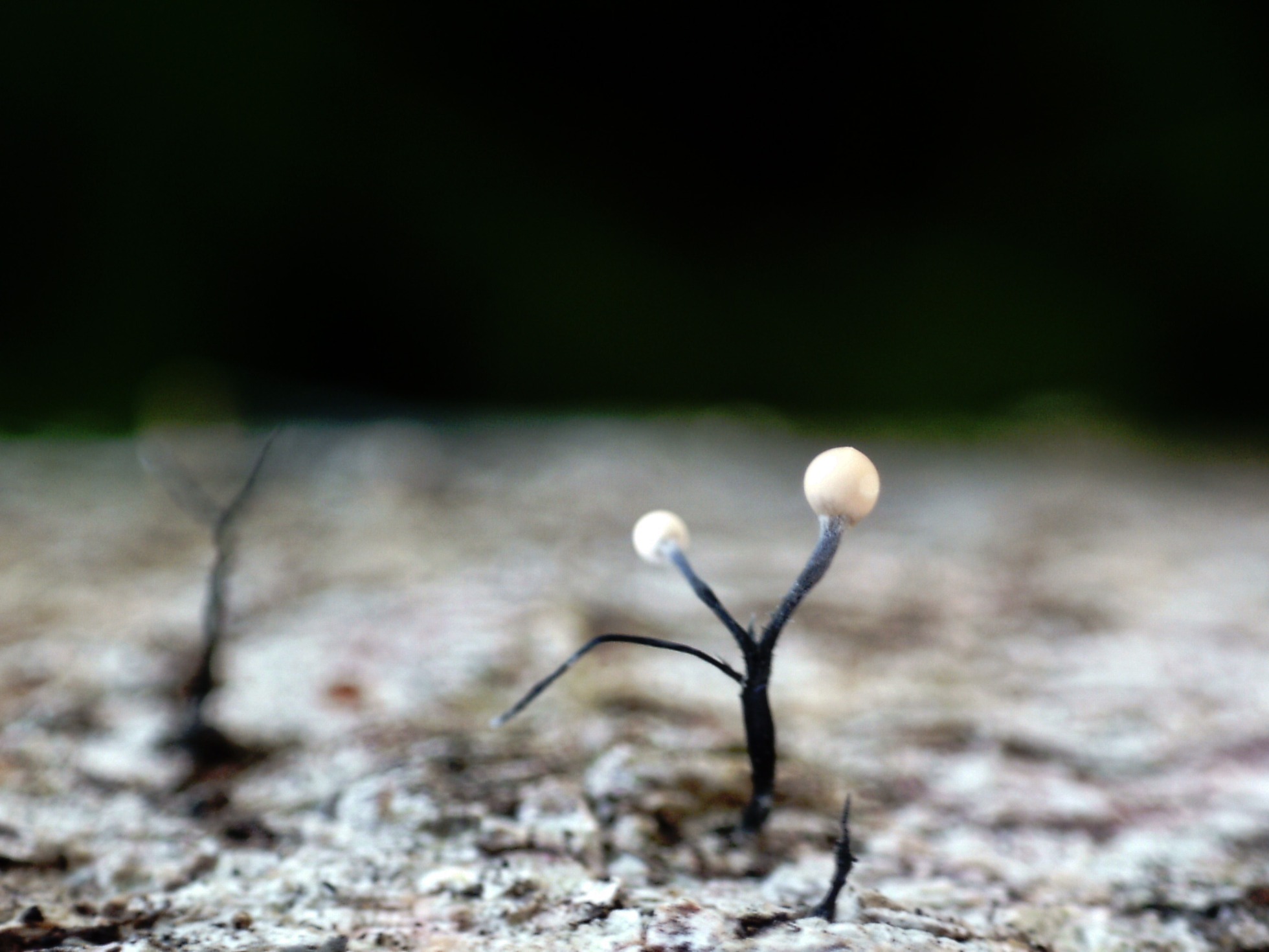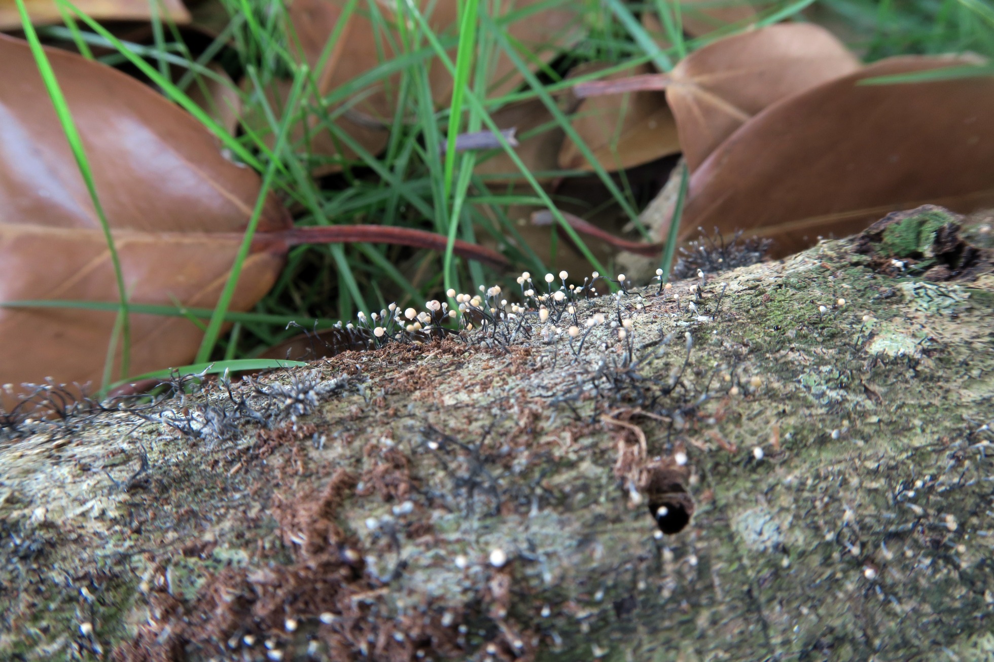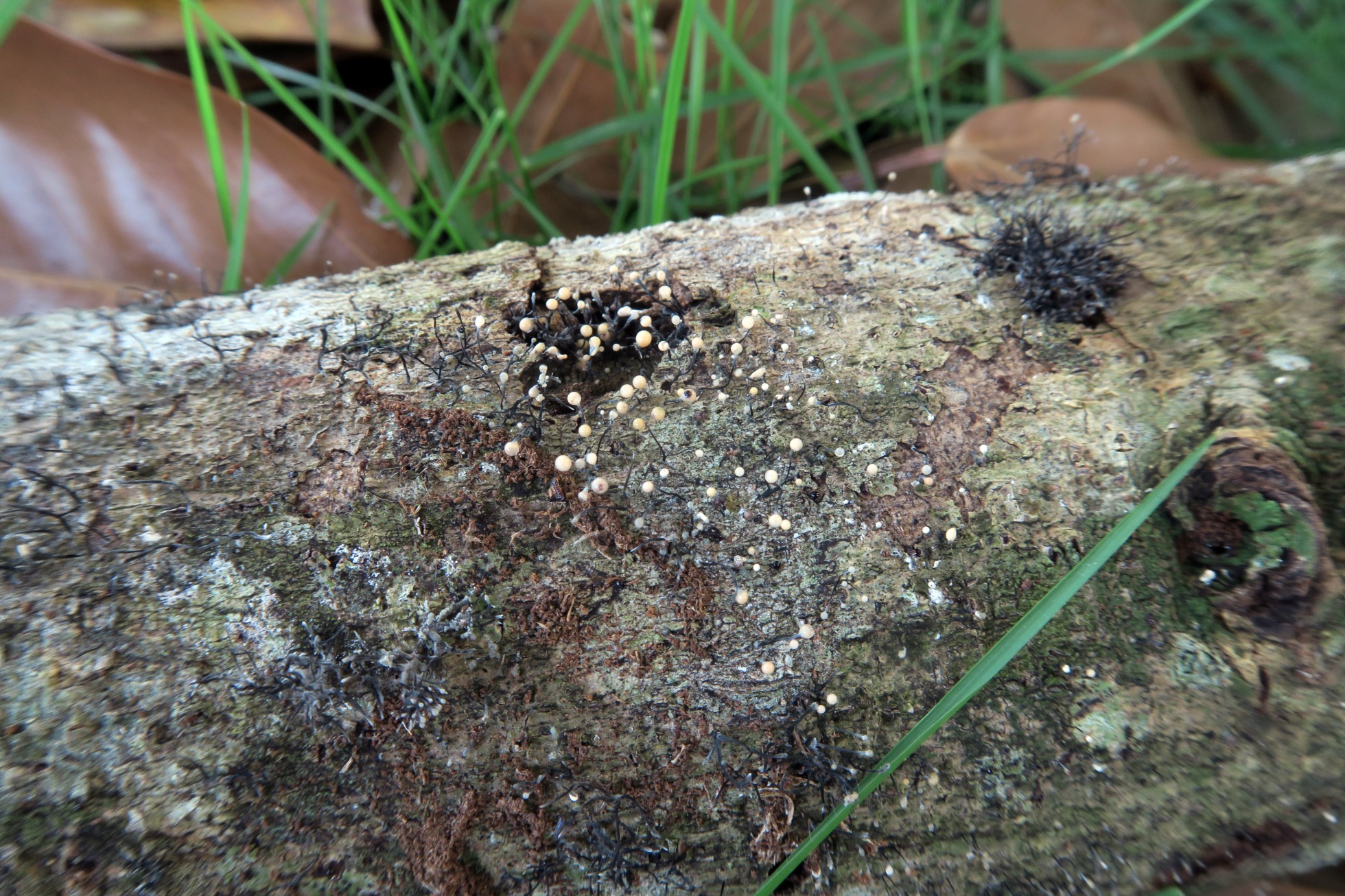 Unos synnemata brotando de manera muy abundante sobre la superficie de un tronco de planifolio tropical indeterminado: