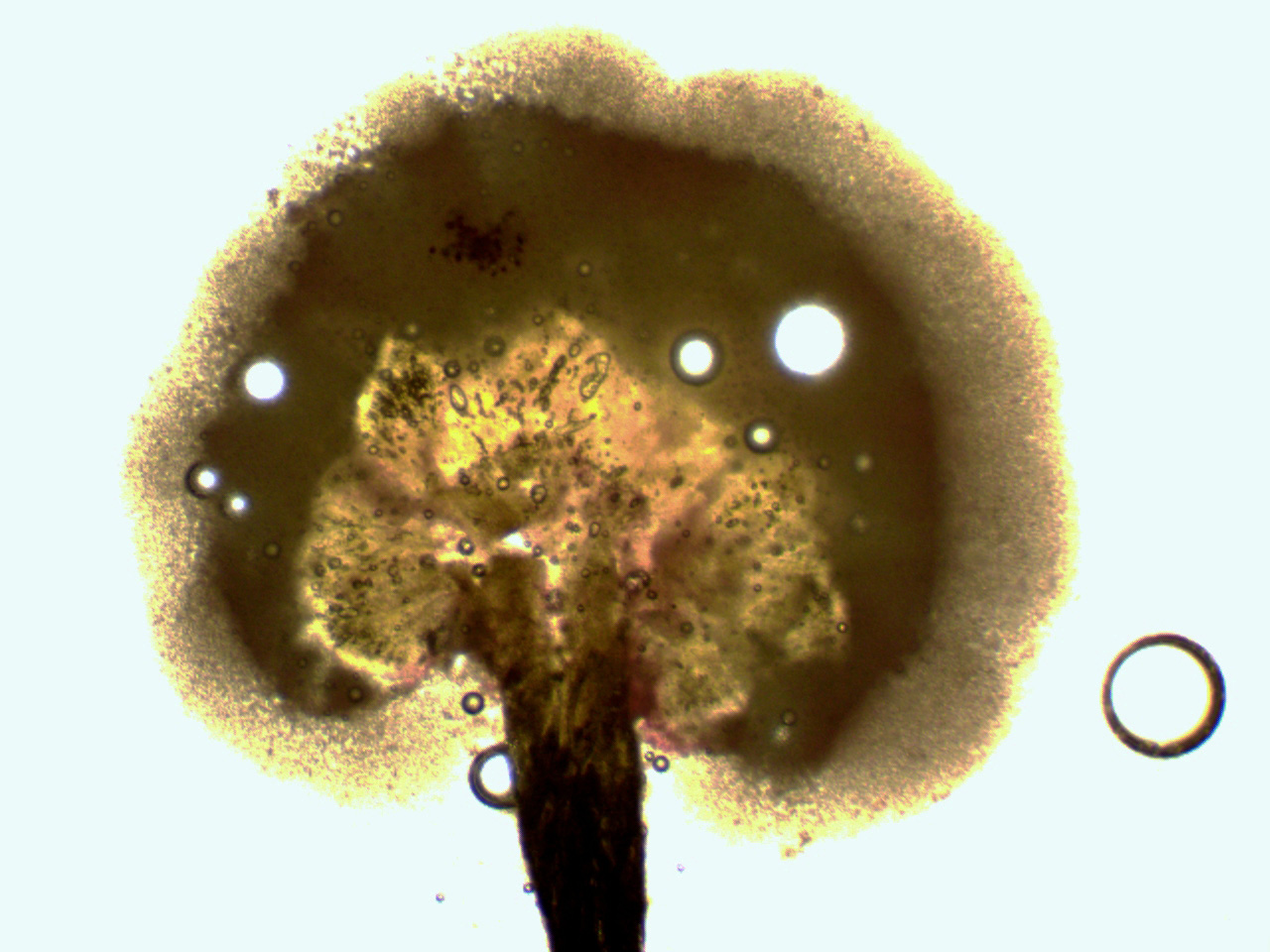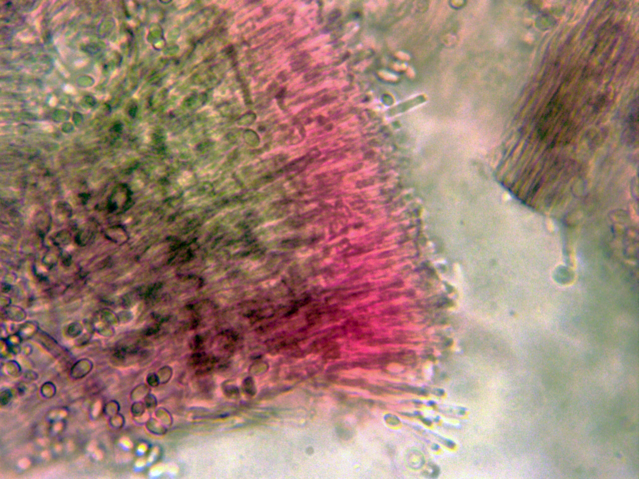 Conidióforos en solución de Rojo Congo diluído: