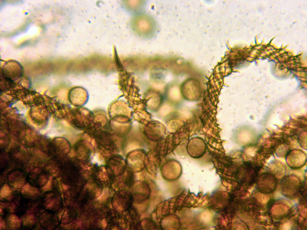 Observaciones: Determinación hecha siguiendo el criterio de las Claves del documento de Fernando Bellido, que dentro del género Metatrichia con eláteres escasos, ornamentados con 3 bandas espiraladas, espinas de 3 a 6 micras y de ámbito tropical, conducen a la Metatrichia horrida propuesta.