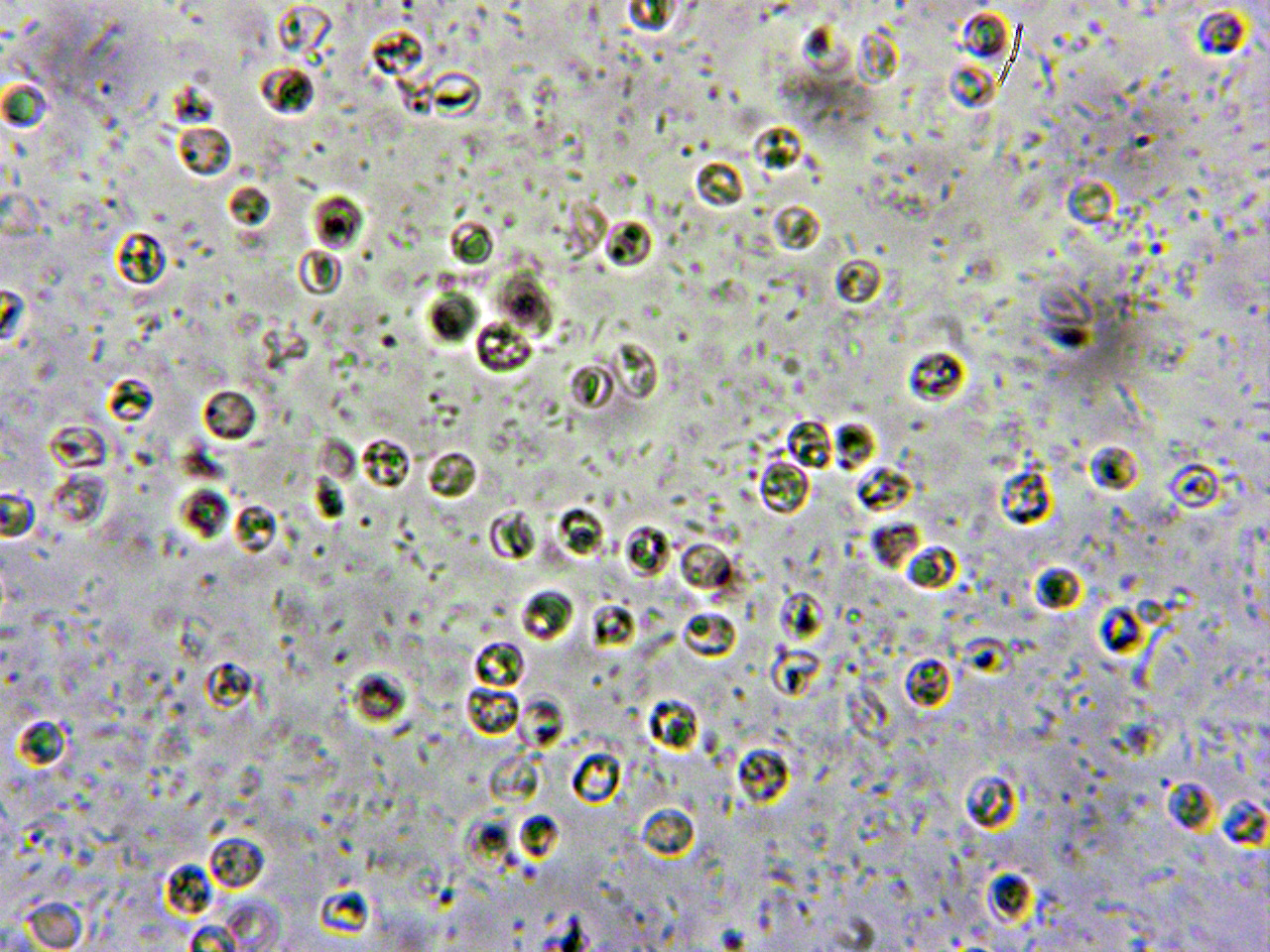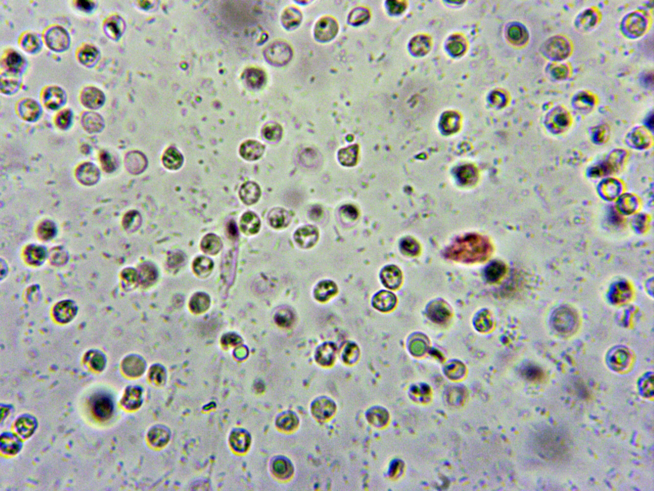 Por otro lado si que entran bien (aunque de modo un poco forzado) dentro del rango de las medidas indicadas en "Les Champignons de Suisse", donde indican unas esporas esféricas con unas medidas de 5 a 6 μm.